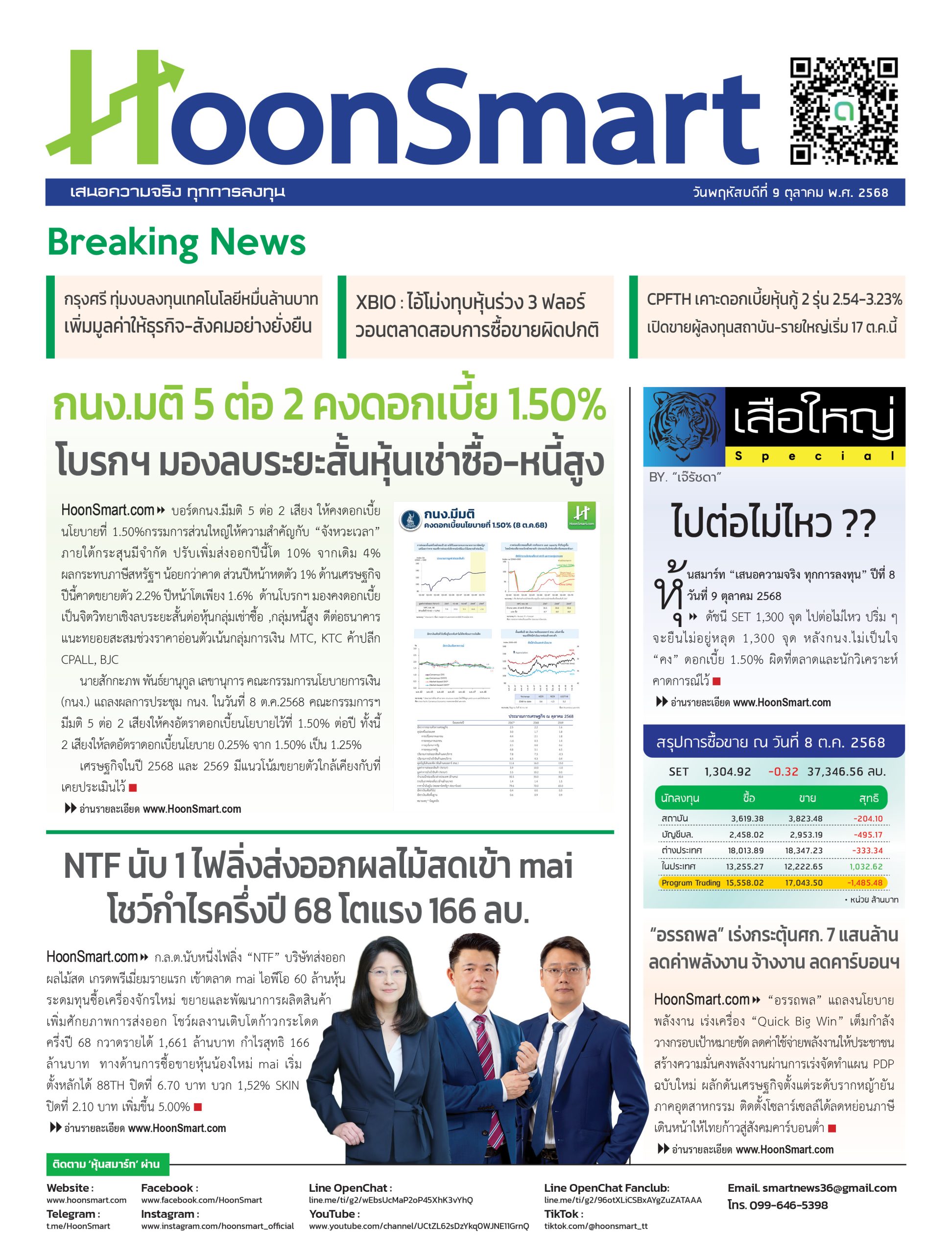 หนังสือพิมพ์ HoonSmart ปีที่ 8 ฉบับวันที่ 9 ต.ค. 2568 08/10/2025 19:2309/10/2025 18:53Ple HoonsmartBreaking News Facebook iconFacebookTwitter iconTwitterLINE iconLine