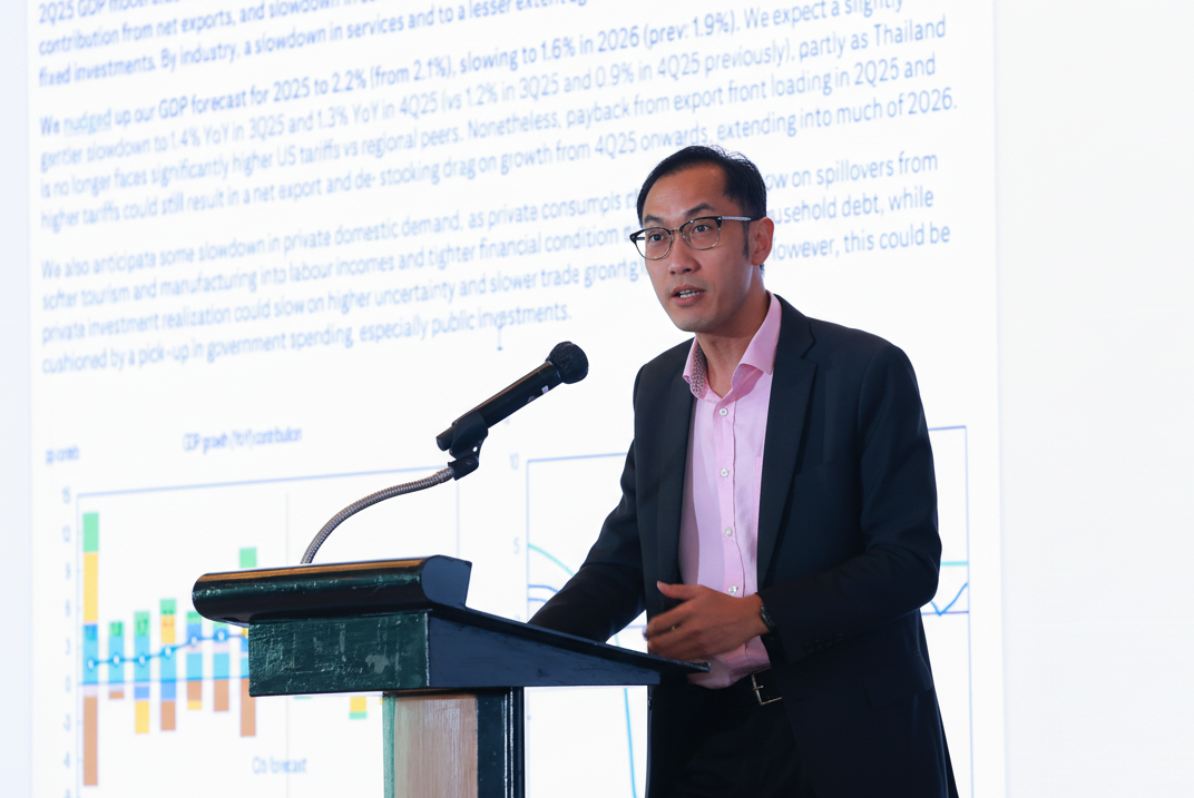 เหว่ย เจิ้ง คิต หัวหน้าฝ่ายวิเคราะห์เศรษฐกิจตลาดเอเชีย ซิตี้ กล่าวว่า ซิตี้แบงก์คาดการณ์ว่าจีดีพีประเทศไทยจะเติบโต 2.2% ในปี 2568 ก่อนที่จะชะลอลงเหลือ 1.6% ในปี 2569 โดยเศรษฐกิจมีแนวโน้มที่จะเผชิญกับการชะลอตัวที่ยาวนานขึ้นในช่วงหลายไตรมาสข้างหน้า เนื่องจากผลจากการเร่งการผลิตลดลงและภาษีส่งผลกระทบต่ออุปสงค์ภายในประเทศ การเติบโตของการส่งออกชะลอตัวน้อยกว่าที่คาดการณ์ไว้ในเดือนกรกฎาคม เนื่องจากมีการเร่งการผลิต แต่มีสัญญาณการชะลอตัวที่ชัดเจนขึ้นในครึ่งหลังของปี 2568 การชดเชยการส่งออกในเดือนสิงหาคมแข็งแกร่งกว่าสำหรับประเทศไทย เมื่อเทียบกับประเทศอาเซียนอื่นๆ โดยที่ส่วนเกินทางการค้าอาจบ่งชี้ถึงการเพิ่มขึ้นของการส่งออกสุทธิที่น้อยลงมาก (หรือแม้กระทั่งการหดตัว) ในไตรมาส 3/2568 ในขณะที่การลดลงของการผลิตภาคอุตสาหกรรมและการเกษตรอาจบ่งชี้ถึงแรงฉุดจากการลดสต็อกสินค้าที่รุนแรงขึ้น