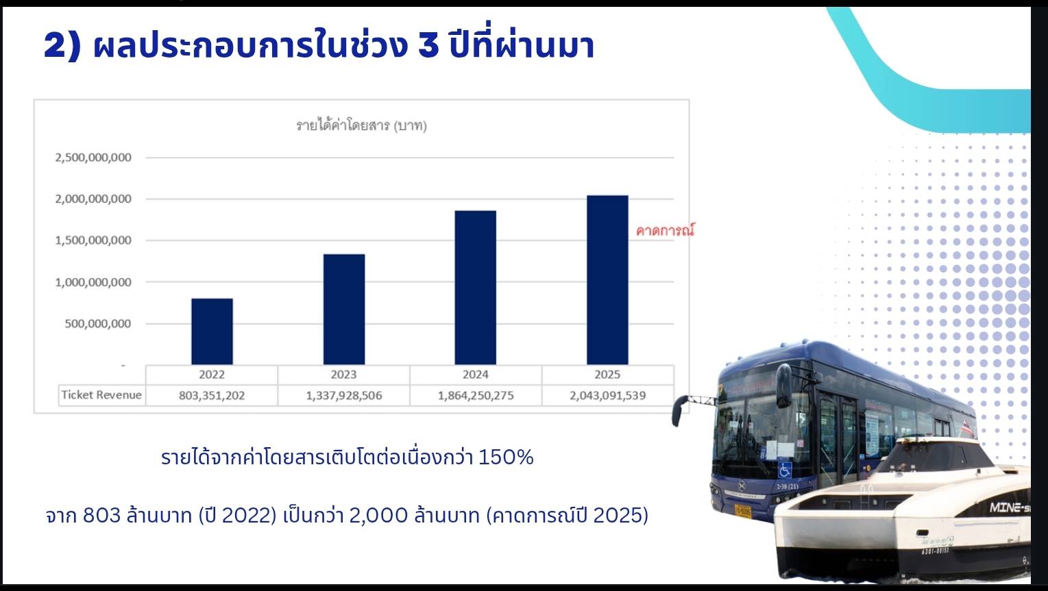 น.ส.กุลพรภัสร์ กล่าวว่า ตลอดระยะเวลา 3 ปีที่ผ่านมา ได้พัฒนาทักษะและปรับเปลี่ยนบุคลากรเพื่อรองรับระบบใหม่ โดยเริ่มดำเนินการจริงในปี 2563 และปัจจุบันมีรถโดยสารไฟฟ้าให้บริการแล้วจำนวน 2,350 คัน รวมถึงเรือไฟฟ้าอีก 45 ลำที่ให้บริการในแม่น้ำเจ้าพระยา