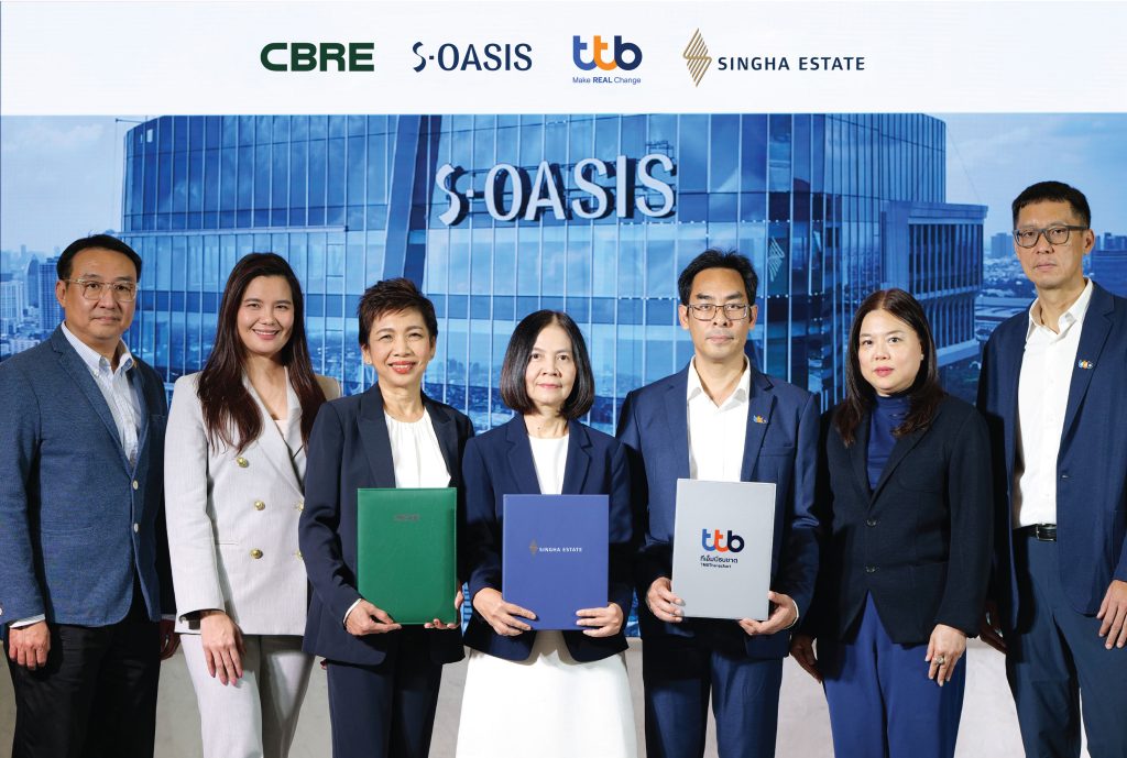 HoonSmart.com>> “สิงห์ เอสเตท” จับมือ “ทีเอ็มบีธนชาต-ซีบีอาร์อี” ลงนามสัญญาเช่าพื้นที่สำนักงาน โครงการ S-OASIS ขนาดรวมกว่า 10,000 ตารางเมตร ขับเคลื่อนทำเลวิภาวดีฯ สู่ศูนย์กลางการทำงานแห่งอนาคต