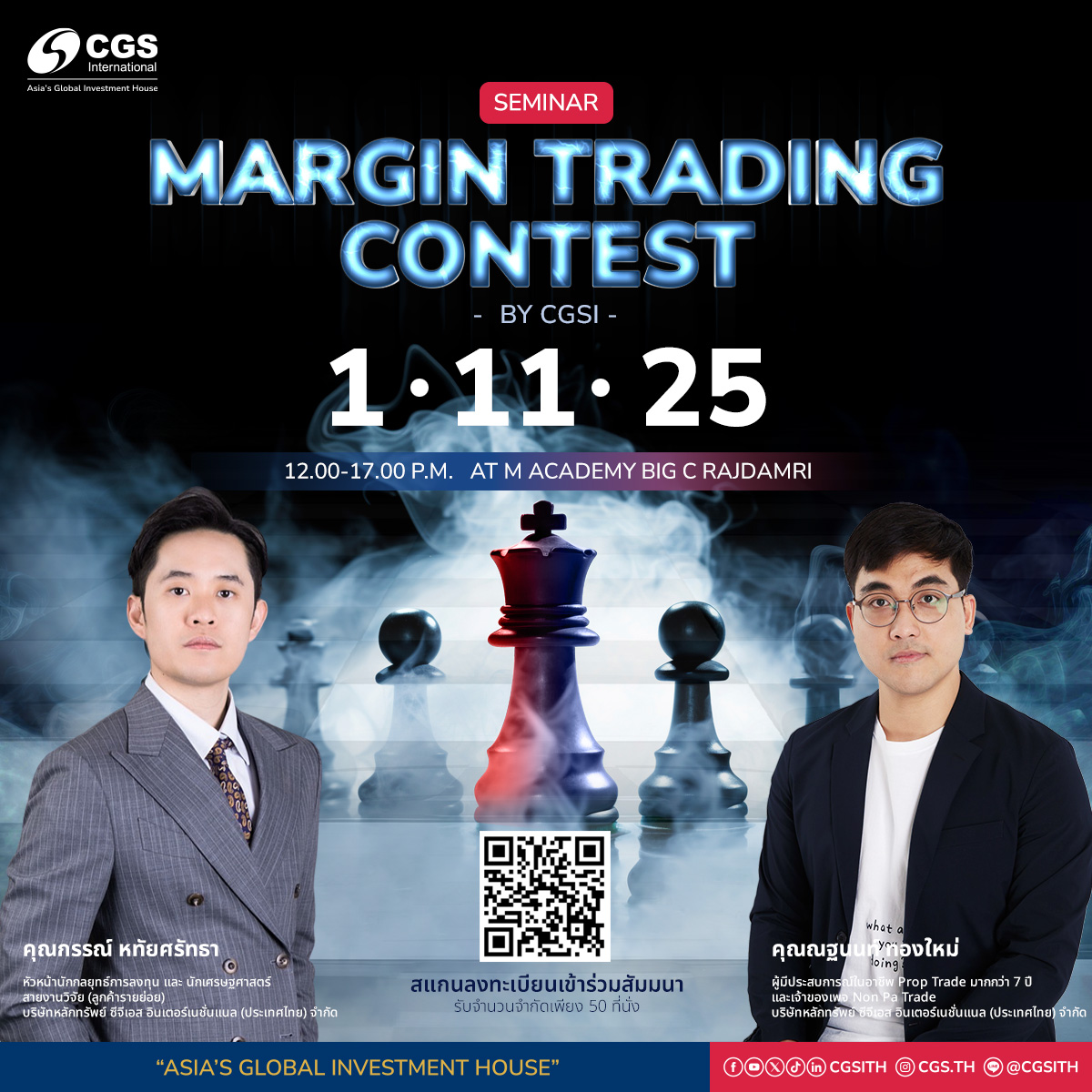 @@@ การลงทุนหุ้นไทย ไม่ได้หอมหวาน มีเสน่ห์เหมือนก่อน รายใหญ่หนีไปลงทุนหุ้นสหรัฐ , หุ้นจีน แต่พอมีโอกาสทำกำไร จากสินค้าใหม่ ๆ บล.CGSI จัดงานสัมมนาดี ๆ ฟรี !! ไม่มีค่าใช้จ่าย “ Margin Trading Contest” เปิดมุมมองใหม่สู่โลกการทำกำไรด้วยบัญชี เครดิต บาลานซ์ เรียนรู้เทคนิค-กลยุทธ์ จากผู้เชี่ยวชาญ วันเสาร์ที่ 1 พ.ย.นี้ เวลา 12.00-17.00 น. รายละเอียดอิเจ๊ ! แปะไว้ให้ข้างล่างแล้ว