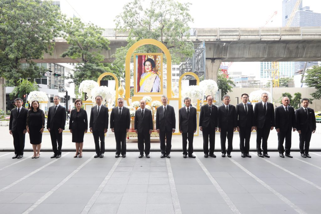 วันที่ 30 ต.ค.2568 ซึ่งเป็นวันครบสัตตมวาร (7 วัน) นายสิงห์ ตังทัตสวัสดิ์ ประธานกรรมการบริหาร นายชาติศิริ โสภณพนิช กรรมการผู้จัดการใหญ่ พร้อมด้วยคณะกรรมการธนาคาร ผู้บริหาร และพนักงานธนาคารกรุงเทพ จำกัด (มหาชน) ร่วมในพิธีแสดงความอาลัยต่อหน้าพระฉายาลักษณ์ สมเด็จพระนางเจ้าสิริกิติ์ พระบรมราชินีนาถ พระบรมราชชนนีพันปีหลวง โดยมีตัวแทนพนักงานอ่านบทกวี ‘ฝากฟ้าดิน’ แสดงความอาลัย ประพันธ์โดย นายเนาวรัตน์ พงษ์ไพบูลย์ ศิลปินแห่งชาติ ที่ปรึกษาศูนย์สังคีตศิลป์ ฝ่ายการประชาสัมพันธ์ จากนั้น กรรมการผู้จัดการใหญ่ ได้กล่าวนำแสดงความอาลัย และนำยืนสงบนิ่งเป็นเวลา 93 วินาที ณ ลานด้านหน้าอาคาร ธนาคารกรุงเทพสำนักงานใหญ่ ถนนสีลม