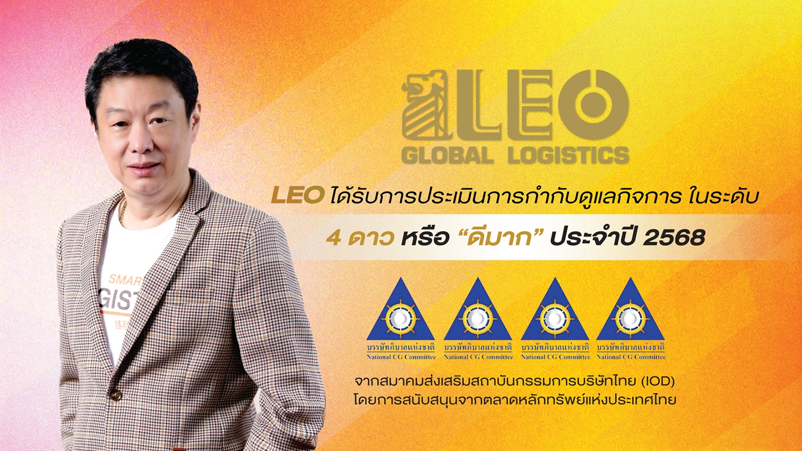 บริษัท ลีโอ โกลบอล โลจิสติกส์ (LEO) หุ้นดี…มีคุณภาพต้อง ภายใต้การบริหารของ CEO คนเก่ง “เกตติวิทย์ สิทธิสุนทรวงศ์” ล่าสุด ! คว้าคะแนนประเมินการกำกับดูแลกิจการ (CGR Rating) ระดับ 4 ดาว หรือ “ดีมาก” ประจำปี 2568 จากสมาคมส่งเสริมสถาบันกรรมการบริษัทไทย (IOD) และตลาดหลักทรัพย์แห่งประเทศไทย (ตลท.)