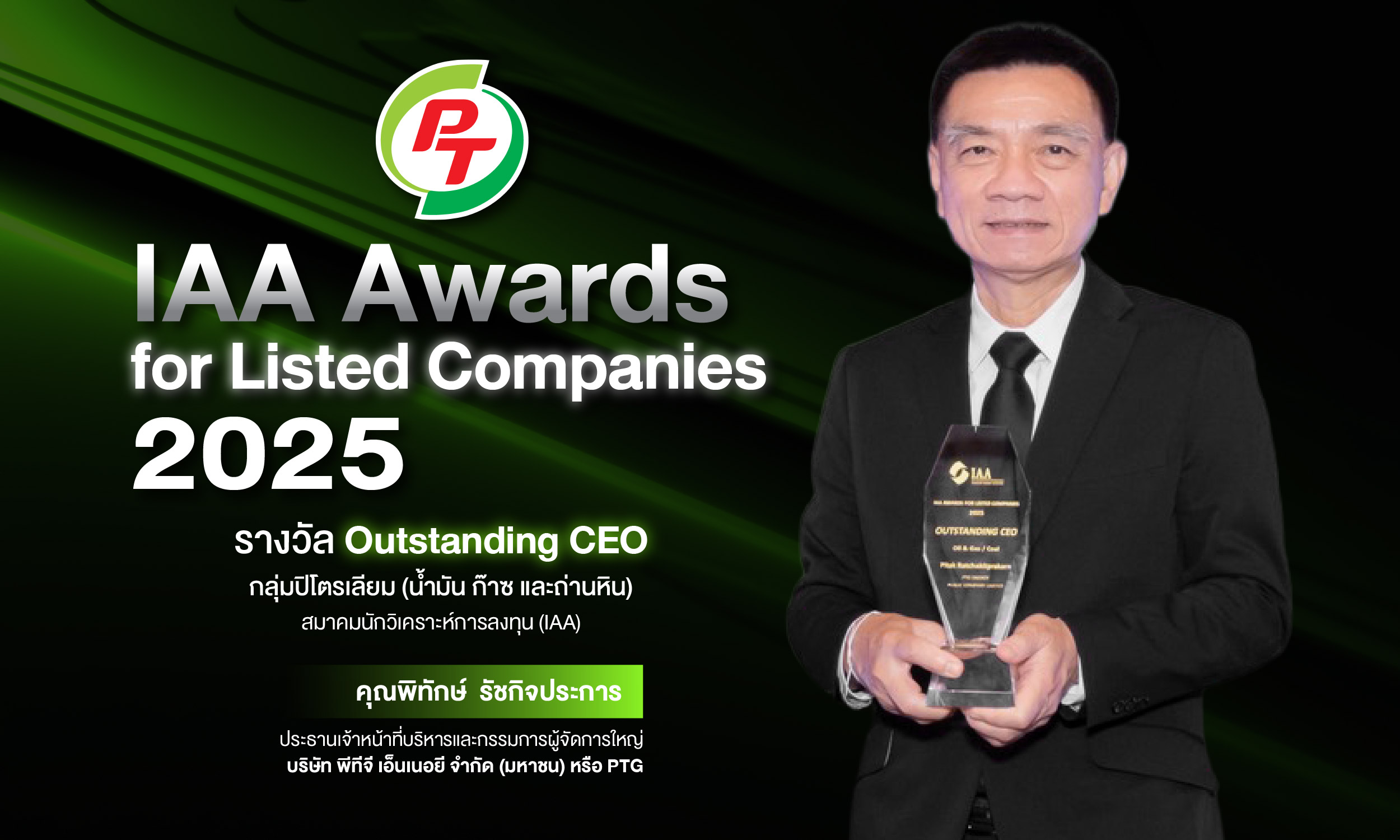 นายพิทักษ์ รัชกิจประการ ประธานเจ้าหน้าที่บริหารและกรรมการผู้จัดการใหญ่ บมจ.พีทีจี เอ็นเนอยี (PTG) เข้ารับรางวัล IAA Awards for Listed Companies 2025 สาขา “Outstanding CEO” ประเภทกลุ่มอุตสาหกรรมปิโตรเลียม (น้ำมันและก๊าซ) จากการเสนอชื่อและให้คะแนนของนักวิเคราะห์และผู้จัดการกองทุนของบริษัทหลักทรัพย์ ซึ่งจัดโดยสมาคมนักวิเคราะห์การลงทุน (IAA) เพื่อสะท้อนการบริหารงานดีเด่น รวมถึงจรรยาบรรณ และบรรษัทภิบาลในการดำเนินธุรกิจ ทั้งยังสามารถนำพาองค์กรให้เติบโตก้าวหน้าอย่างยั่งยืน