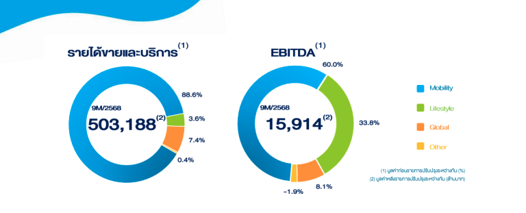 กลุ่มธุรกิจ Mobility จากกำไรขั้นต้นเฉลี่ยต่อลิตรที่ปรับตัวเพิ่มขึ้น โดยหลักจากเบนซินและดีเซล กลุ่มธุรกิจ Lifestyle ปรับเพิ่มขึ้นจากธุรกิจอาหารและเครื่องดื่ม โดยเฉพาะ Café Amazon ในช่วงไตรมาส 3/2568 มีปริมาณจำหน่ายรวม 109 ล้านแก้ว เพิ่มขึ้น 2 ล้านแก้วจากไตรมาสก่อนหน้า และเพิ่มขึ้น 11 ล้านแก้ว หรือ 11.2% เมื่อเทียบกับช่วงเดียวกันของปีก่อน ส่วนกลุ่มธุรกิจ Global เพิ่มขึ้นเล็กน้อย โดยยังคงมีการเติบโตในประเทศ สปป. ที่มีกำไรขั้นต้นเฉลี่ยต่อลิตรสูงขึ้น จึงทำให้ผลประกอบการโดยรวมของกลุ่มธุรกิจต่างประเทศยังคงอยู่ในทิศทางบวก