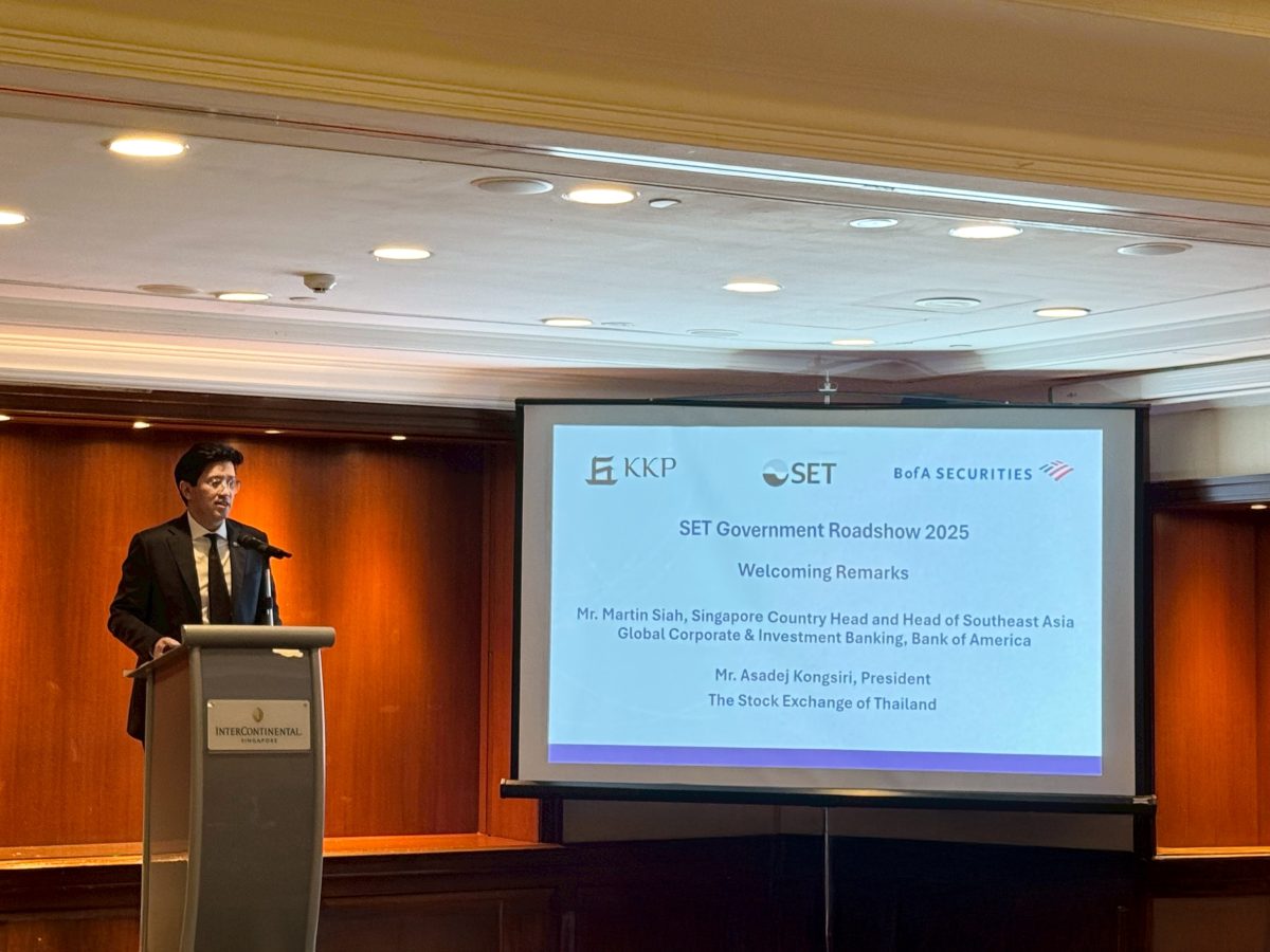 นายอัสสเดช คงสิริ กรรมการและผู้จัดการ ตลาดหลักทรัพย์แห่งประเทศไทย เปิดเผยว่า “SET Government Roadshow 2025″ เป็นเวทีสำคัญที่เปิดโอกาสให้ภาครัฐ ภาคธุรกิจ และภาคตลาดทุนได้พบและให้ข้อมูลโดยตรงกับผู้ลงทุนสถาบันระดับโลก สอดคล้องกับแผนงานของตลาดหลักทรัพย์ฯ ที่ให้ความสำคัญกับการสื่อสารให้ข้อมูลแก่ผู้ลงทุนทั้งในประเทศและต่างประเทศอย่างต่อเนื่อง