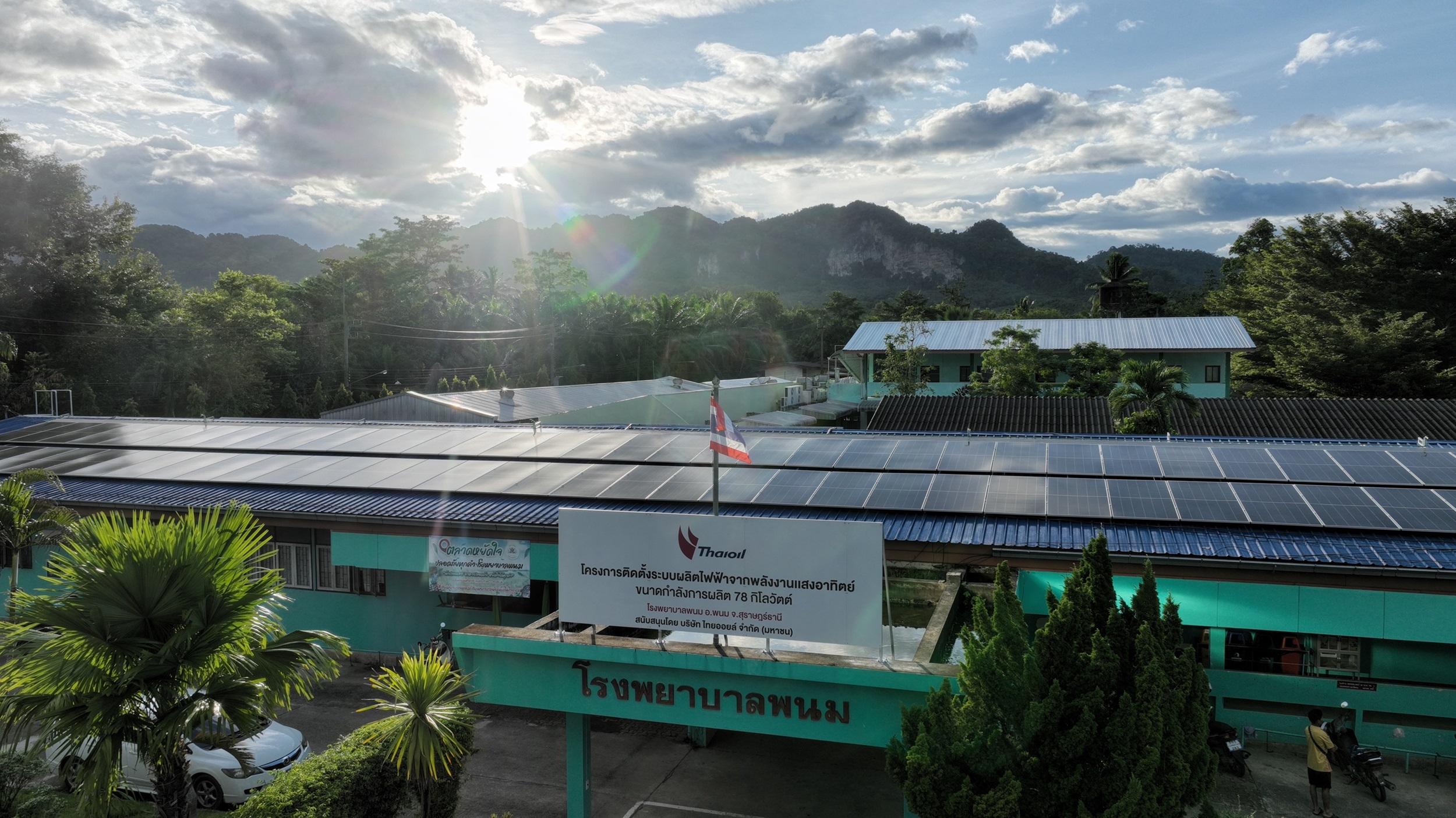 คุณบัณฑิต ธรรมประจำจิต ประธานเจ้าหน้าที่บริหารและกรรมการผู้จัดการใหญ่ บริษัท ไทยออยล์ จำกัด (มหาชน) ส่งมอบระบบผลิตไฟฟ้าจากพลังงานแสงอาทิตย์ ให้กับโรงพยาบาลพนม จ.สุราษฎร์ธานี โดยมี นายแพทย์อนุ ทองแดง สาธารณสุขจังหวัดสุราษฎร์ธานี -เป็นผู้แทนรับมอบ พร้อมด้วย คุณสุเชาว์ ทูโมสิก นายอำเภอพนม ผู้แทนสมาคมศิษย์เก่าไทยออยล์ และผู้แทนจากหน่วยงานภาครัฐ ร่วมเป็นสักขีพยาน โดยในพิธีการส่งมอบฯ โรงพยาบาลได้จัดการออกหน่วยบริการตรวจสุขภาพให้กับประชาชน และอาสาสมัครสาธารณสุขประจำหมู่บ้านจิตอาสาร่วมกันทำลูกประคบและน้ำมันหอมระเหย เพื่อแจกให้ประชาชน ณ ลานด้านหน้าอาคารห้องประชุมใหญ่ โรงพยาบาลพนม อำเภอพนม จังหวัดสุราษฎร์ธานี