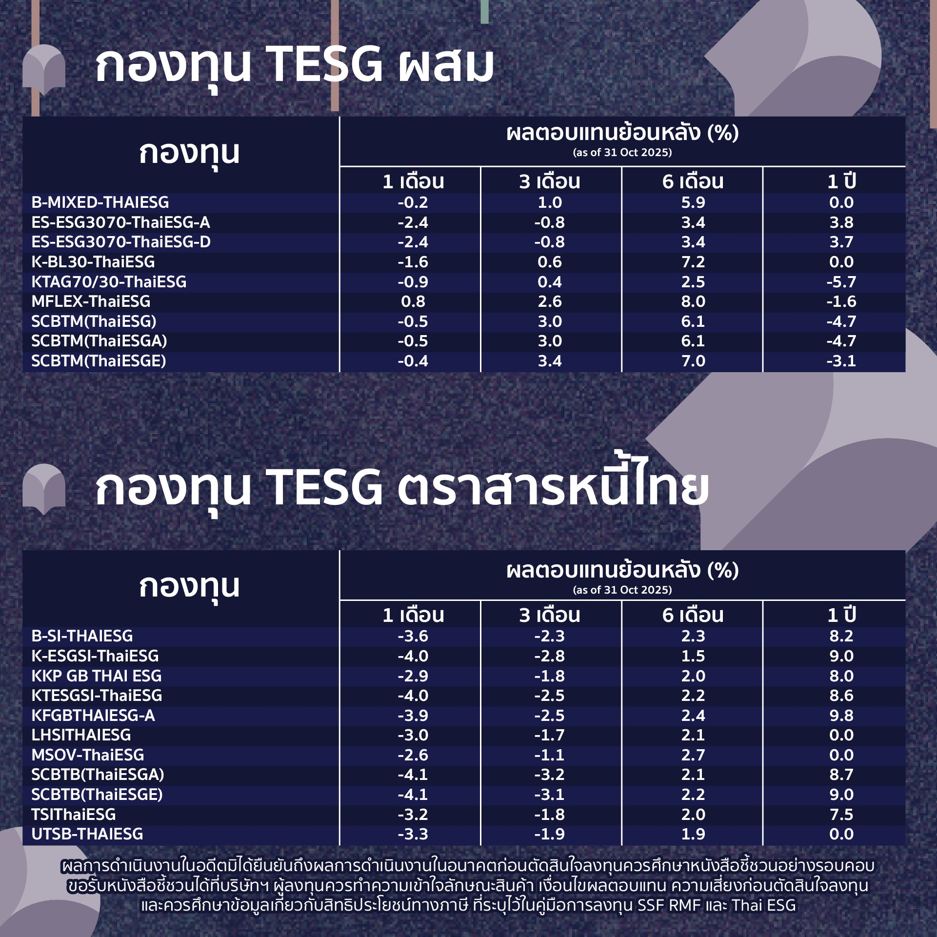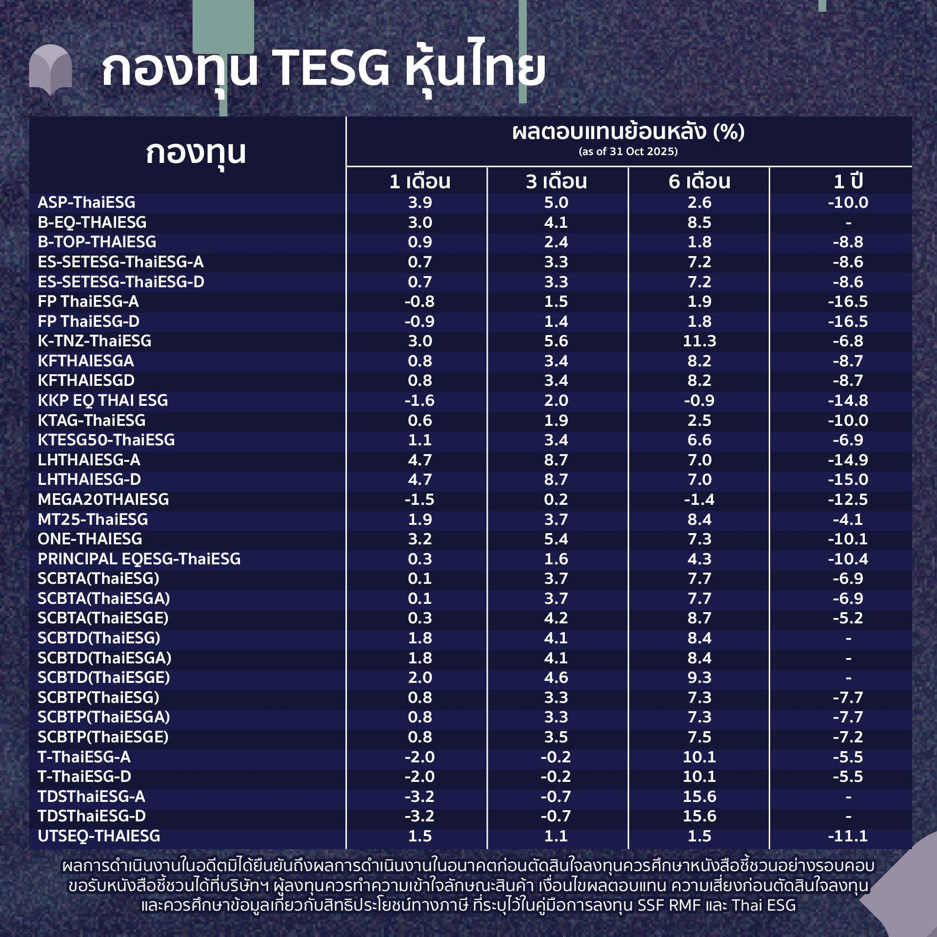 TESG (Thai ESG) โฟกัสหุ้นไทยคุณภาพ มีธรรมาภิบาล โปร่งใส และสอดคล้องเมกะเทรนด์ด้านสิ่งแวดล้อม–สังคม