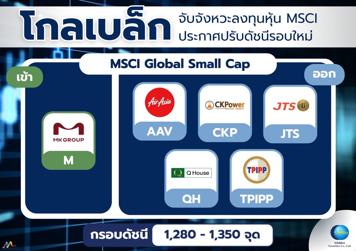 ขณะที่ดัชนี MSCI Global Small Cap มีการเปลี่ยนแปลงสำคัญ โดยหุ้นที่มีการนำเข้าคำนวณได้แก่ M ส่วนหุ้นที่นำออกจากการคำนวนดัชนี ได้แก่ AAV, CKP, JTS, QH, TPIPP ซึ่งส่งผลให้มีแรงซื้อเก็งกำไรหุ้นที่จะปรับเข้า และระวังแรงขายหุ้นที่ถูกปรับออก