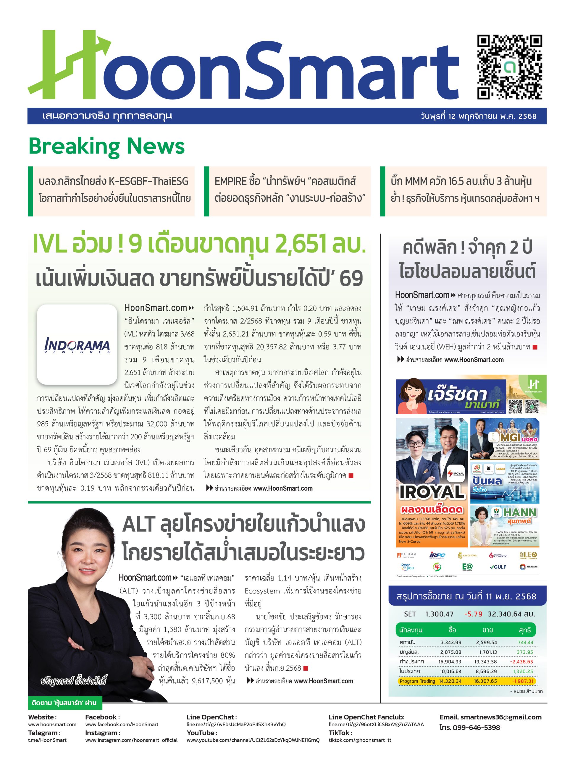 หนังสือพิมพ์ HoonSmart ปีที่ 8 ฉบับวันที่ 12 พ.ย. 2568 11/11/2025 19:26Ple HoonsmartBreaking NewsExclusive News Facebook iconFacebookTwitter iconTwitterLINE iconLine
