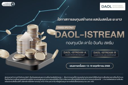 HoonSmart.com>>”บลจ.ดาโอ” ตอบโจทย์การลงทุน เพื่อสร้างกระแสเงินสดที่มั่นคง เสิร์ฟ “กองทุนเปิด ดาโอ อินคัม สตรีม” (DAOL-ISTREAM) ชูแนวคิด “Income Stream Portfolio” ด้วยกลยุทธ์ลงทุนสร้าง “กระแสเงินสด” ผ่านการลงทุนในสินทรัพย์ที่สร้างรายได้จริงจากทั่วโลก เพื่อกระจายความเสี่ยง สร้างโอกาสรับผลตอบแทนในระยะยาว IPO ตั้งแต่ 13–18 พ.ย.68
