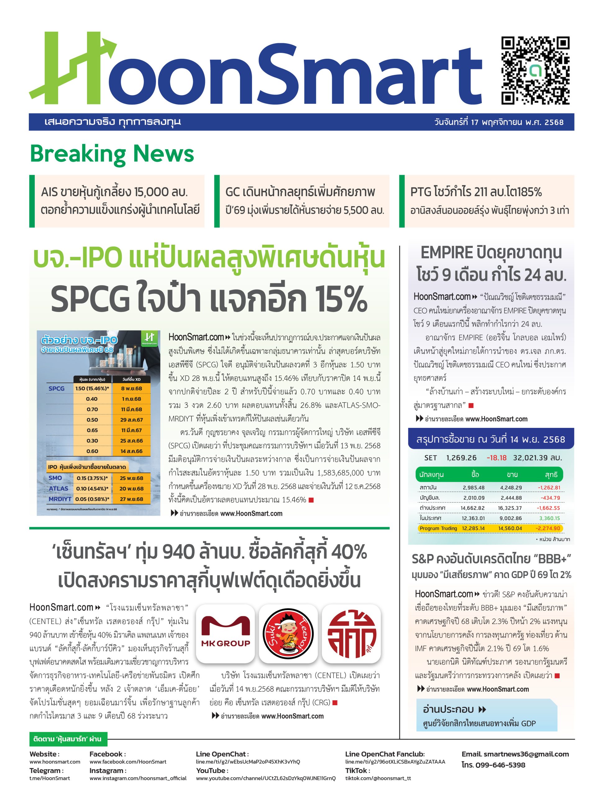 หนังสือพิมพ์ HoonSmart ปีที่ 8 ฉบับวันที่ 17 พ.ย. 2568 16/11/2025 13:5717/11/2025 19:23Ple HoonsmartBreaking News Facebook iconFacebookTwitter iconTwitterLINE iconLine