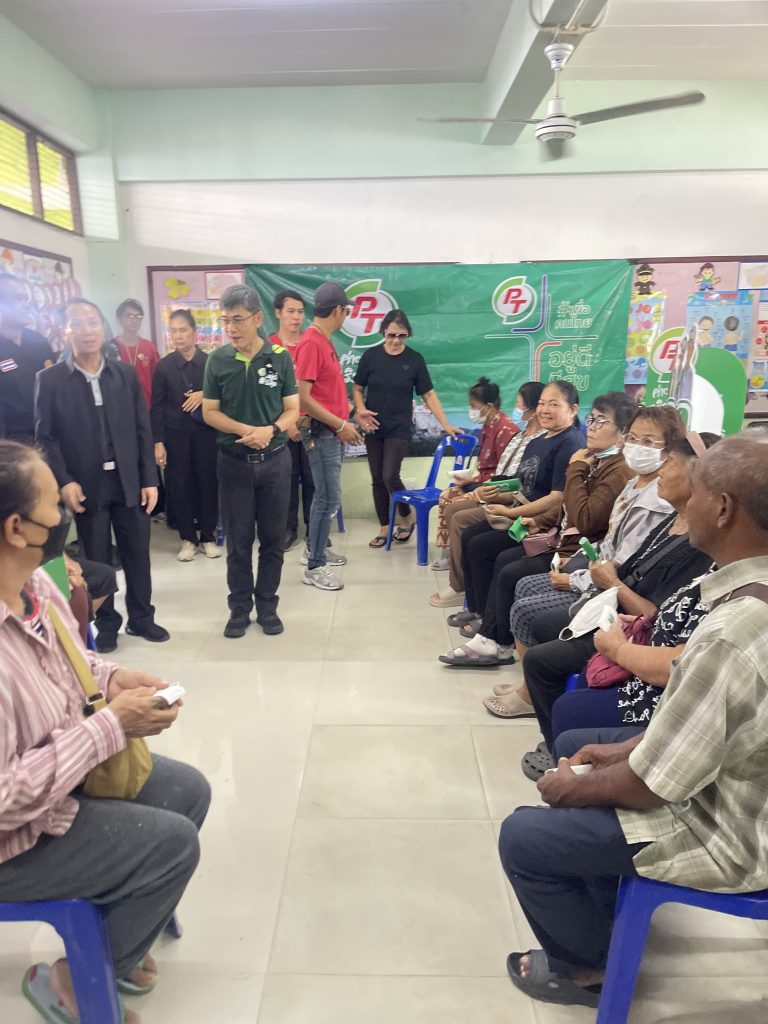 กิจกรรมหลักคือโครงการ “พีที ชุมชนตาสว่าง” กิจกรรมส่งเสริมสุขภาพอนามัย พัฒนาด้านความ เป็นอยู่ของคนในชุมชน บริการวัดสายตาประกอบแว่น และให้ความรู้เรื่องดวงตากับผู้สูงอายุ ปัจจุบันเรามอบแว่นตาให้ผู้สูงอายุไปแล้วกว่า 6,600 คน และในชุมชนนี้จะเพิ่มอีกจำนวน 300 คน เพื่อให้ทุกคนมีชีวิตความเป็นอยู่ที่ดีขึ้น