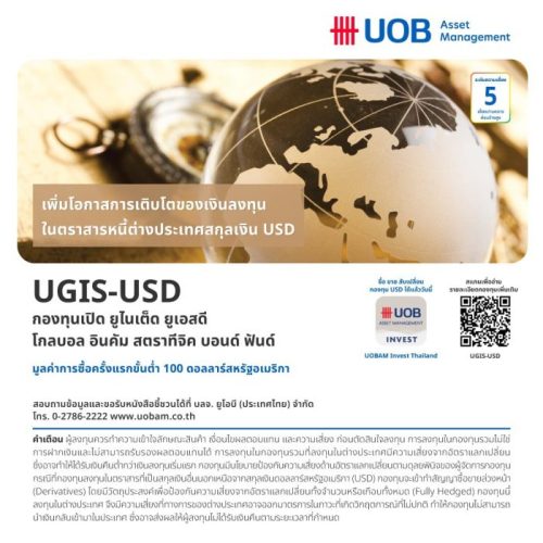 ก่อนหน้านี้ บลจ.ยูโอบี ได้เริ่มนำเสนอกองทุนเปิด ยูไนเต็ด ยูเอสดี โกลบอล อินคัม สตราทีจิค บอนด์ ฟันด์ (UGIS-USD) กองทุนรวมตราสารหนี้ทั่วโลก เปิดขยา IPO ตั้งแต่ 30 ก.ค. – 6 ส.ค.2568 ที่ผ่านมา เป็นกองทุนรวมตราสารหนี้ทั่วโลกที่ให้ผลตอบแทนในสกุลเงินดอลลาร์สหรัฐ (USD) ระดับความเสี่ยง 5 (เสี่ยงปานกลางค่อนข้างสูง) โดยกองทุนนี้เป็นกองทุนรวมตราสารหนี้ประเภท Feeder Fund ที่เน้นลงทุนในหน่วยลงทุนของกองทุนรวมต่างประเทศ ชื่อ PIMCO GIS Income Fund (Class I) (กองทุนหลัก) เพียงกองทุนเดียวโดยเฉลี่ยในรอบปีบัญชีไม่น้อยกว่าร้อยละ 80 ของมูลค่าทรัพย์สินสุทธิของกองทุน