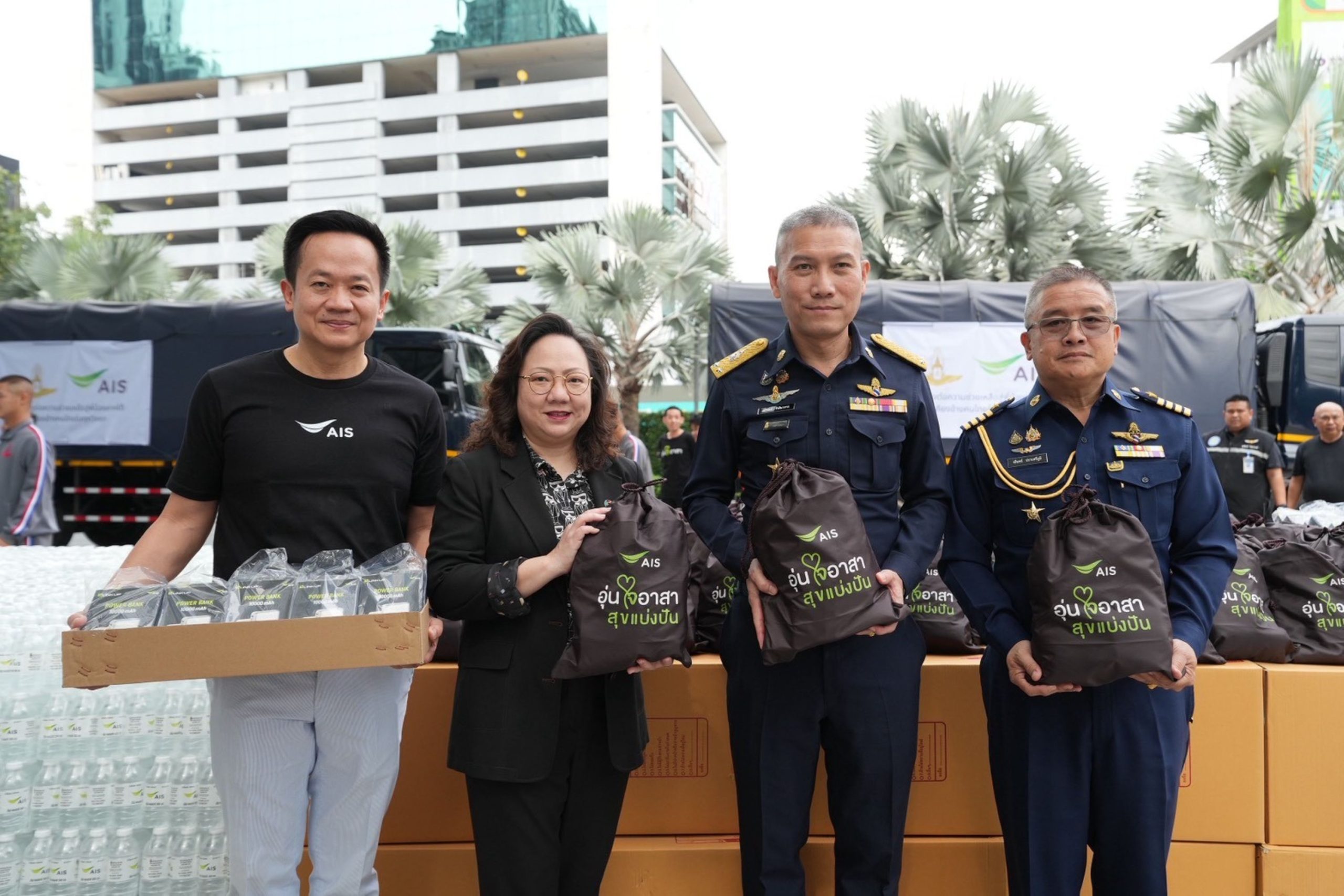 โดยมี นางสาวกานติมา เลอเลิศยุติธรรม รองประธานเจ้าหน้าที่บริหาร ด้านธุรกิจองค์กร เอไอเอส พร้อมด้วยพนักงานอุ่นใจอาสา ได้ส่งมอบสิ่งของช่วยเหลือให้แก่กองทัพอากาศ โดยมี พลอากาศตรี อภิรัตน์ รังสิมาการ รองเจ้ากรมกิจการพลเรือนทหารอากาศ เป็นผู้รับมอบ เพื่อนำไปส่งต่อให้กับประชาชนในพื้นที่ประสบอุทกภัยในภาคใต้ต่อไป