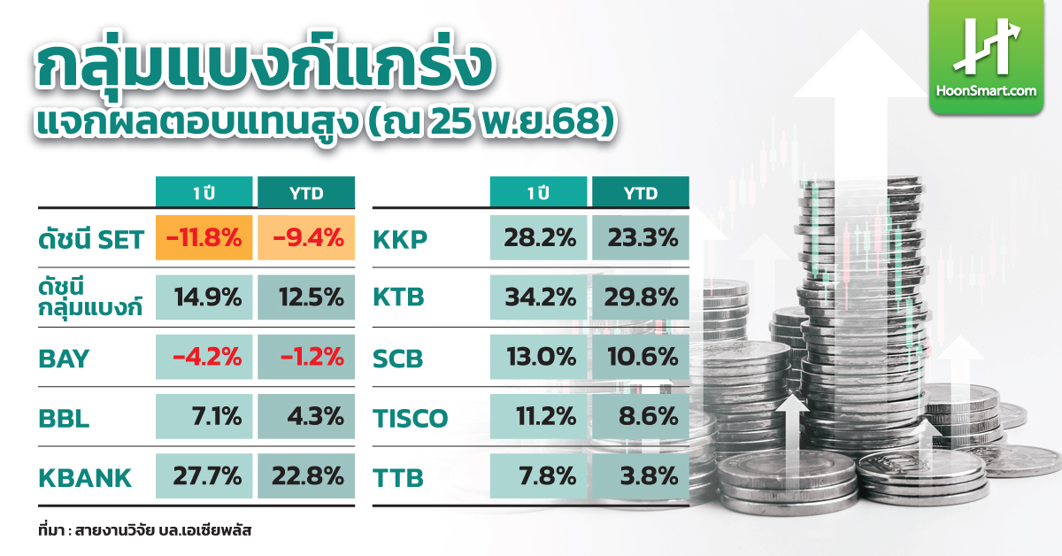 “กลุ่มแบงก์ใหญ่ชอบ KTB มากที่สุด จาก ROE สูงสุดในกลุ่มแบงก์ใหญ่ และโอกาสในการซื้อหุ้นคืน รองลงมา BBL จากแนวโน้มคุณภาพสินทรัพย์เริ่มคุมได้ดีขึ้น แม้แผนการบริหารโครงสร้างเงินทุนช้ากว่ากลุ่ม แต่สะท้อนในราคาหุ้นแล้ว หลัง Earning yield (EPS/ราคา) ที่ 15% สูงกว่าธนาคารใหญ่ หากมีการส่งสัญญาณยกระดับนโยบายการจ่ายเงินปันผลจะช่วยให้ราคาหุ้นฟื้นตัวตามธนาคารใหญ่ได้ดีขึ้น และ KBANK การซื้อหุ้นคืนช่วยจำกัดความเสี่ยงราคาลง และลุ้นเงินทุนไหลเข้า”บล.เอเซียพลัสระบุ