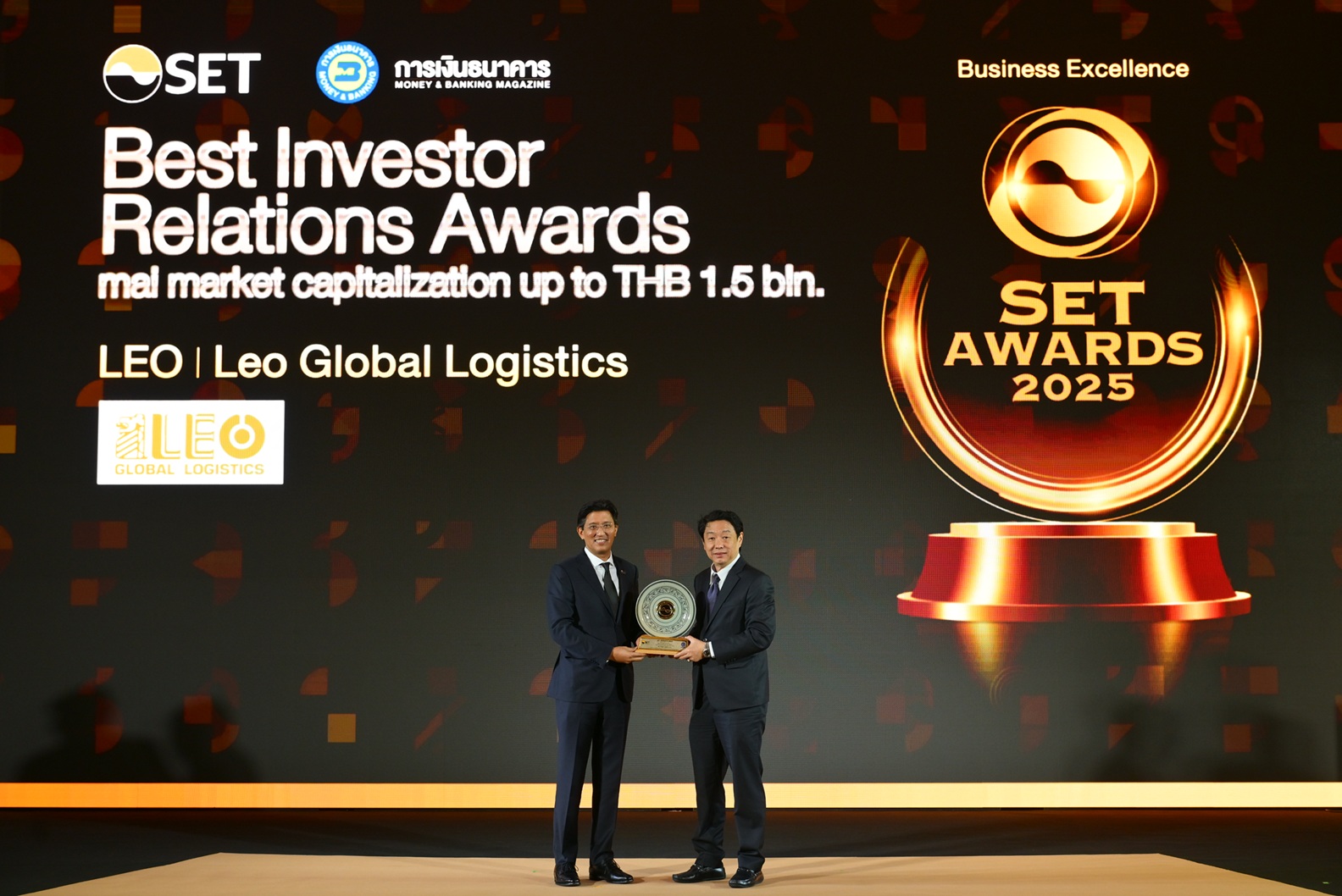 นายเกตติวิทย์ สิทธิสุนทรวงศ์ ประธานเจ้าหน้าที่บริหาร บริษัท ลีโอ โกลบอล โลจิสติกส์ (LEO) เปิดเผยว่า บริษัท ฯ เข้ารับรางวัลนักลงทุนสัมพันธ์ยอดเยี่ยม (Best Investor Relations Awards) ในกลุ่มรางวัล Business Excellence สำหรับบริษัทจดทะเบียน (บจ.) ในตลาดหลักทรัพย์ เอ็ม เอ ไอ (mai) ที่มีมูลค่าหลักทรัพย์ตามราคาตลาดไม่เกิน 1,500 ล้านบาท จากตลาดหลักทรัพย์แห่งประเทศไทย ในงานประกาศผลรางวัล SET Awards 2025 เมื่อวันที่ 27 พฤศจิกายน 2568