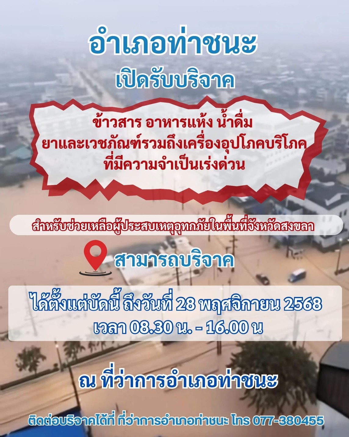ทั้งนี้ การส่งมอบสิ่งของช่วยเหลือได้ดำเนินการผ่าน ที่ว่าการอำเภอท่าชนะ โดยมี นายสำนวน ทองศรี นายอำเภอท่าชนะ เป็นตัวแทนรับมอบ เพื่อประสานงานและกระจายสิ่งของไปยังพื้นที่ที่ได้รับความเดือดร้อนตามลำดับความเร่งด่วน สะท้อนถึงการทำงานร่วมกันระหว่างภาคเอกชนและภาครัฐ ภายใต้หลักธรรมาภิบาลและความโปร่งใส ซึ่งเป็นส่วนหนึ่งของความรับผิดชอบด้าน G – Governance ของบริษัท