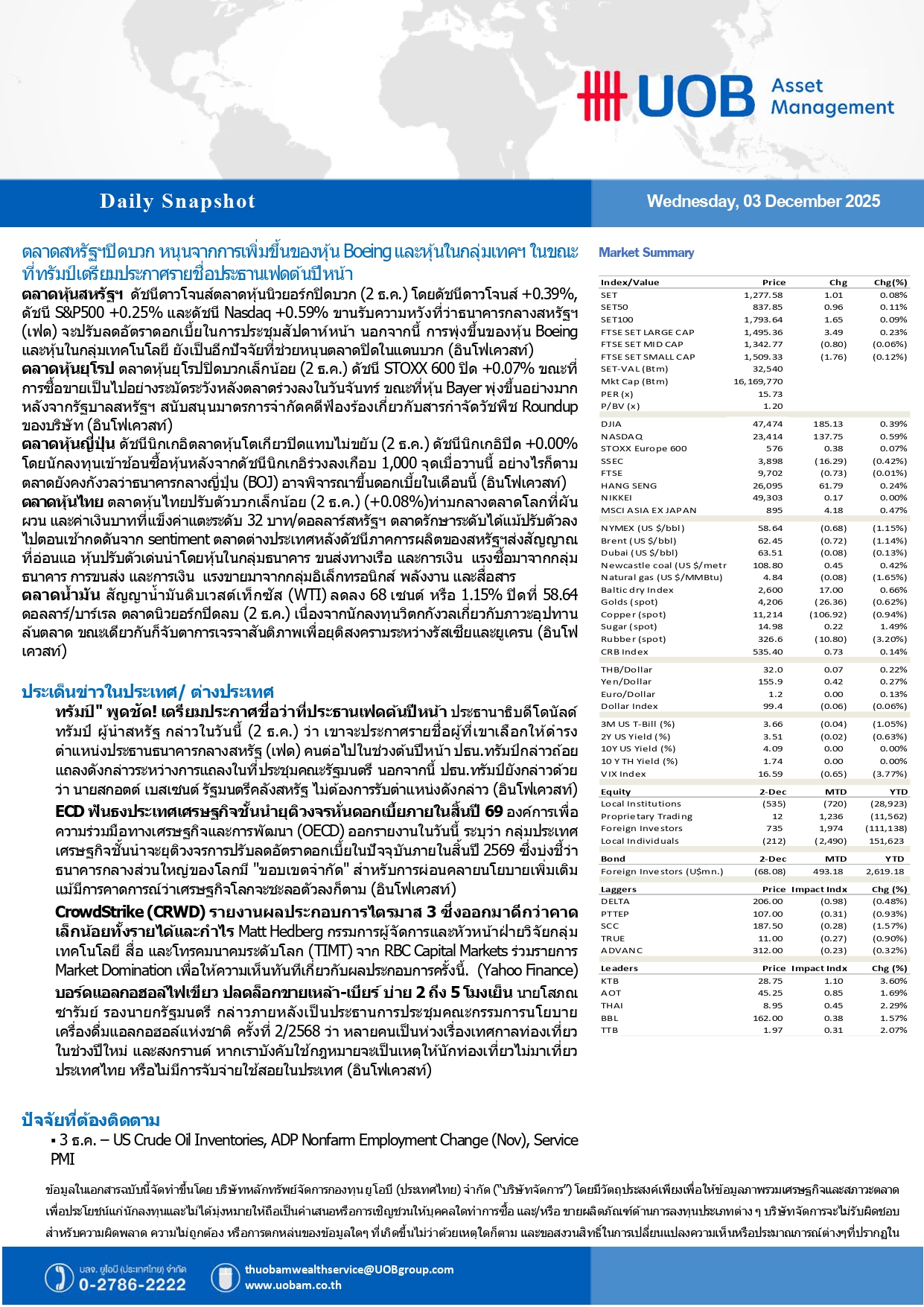 UOBAM Daily Snapshot : ตลาดสหรัฐฯปิดบวก หนุนจากการเพิ่มขึ้นของหุ้น Boeing – หุ้นกลุ่มเทคฯ 03/12/2025 10:1803/12/2025 10:47009Breaking News, Fund Manager HoonSmart.com>> UOBAM Daily Snapshot : ตลาดสหรัฐฯปิดบวก หนุนจากการเพิ่มขึ้นของหุ้น Boeing – หุ้นกลุ่มเทคฯ ในขณะที่ทรัมป์เตรียมประกาศรายชื่อประธานเฟดต้นปีหน้า ———————————————————————————————————————————————————– Facebook iconFacebookTwitter iconTwitterLINE iconLine
