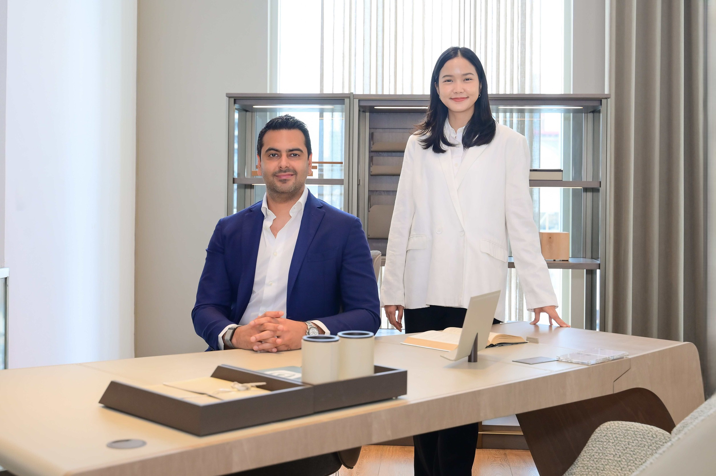 นายเควิน กัมบีร์ (ซ้าย) ประธานเจ้าหน้าที่บริหาร พร้อมด้วย น.ส.พัทธ์ธีรา จันทจร (ขวา) รองประธานเจ้าหน้าที่บริหารฝ่ายบัญชีและการเงิน บริษัท ยูโร ครีเอชั่นส์ (EURO) ถ่ายภาพร่วมกันภายหลังการนำเสนอข้อมูลธุรกิจ และผลการดำเนินงานไตรมาส 3/2568 ในงานบริษัทจดทะเบียนพบผู้ลงทุน (Opportunity Day) งานดังกล่าวจัดขึ้นที่โชว์รูม Euro Creations Thonglor 7 เมื่อเร็วๆ นี้