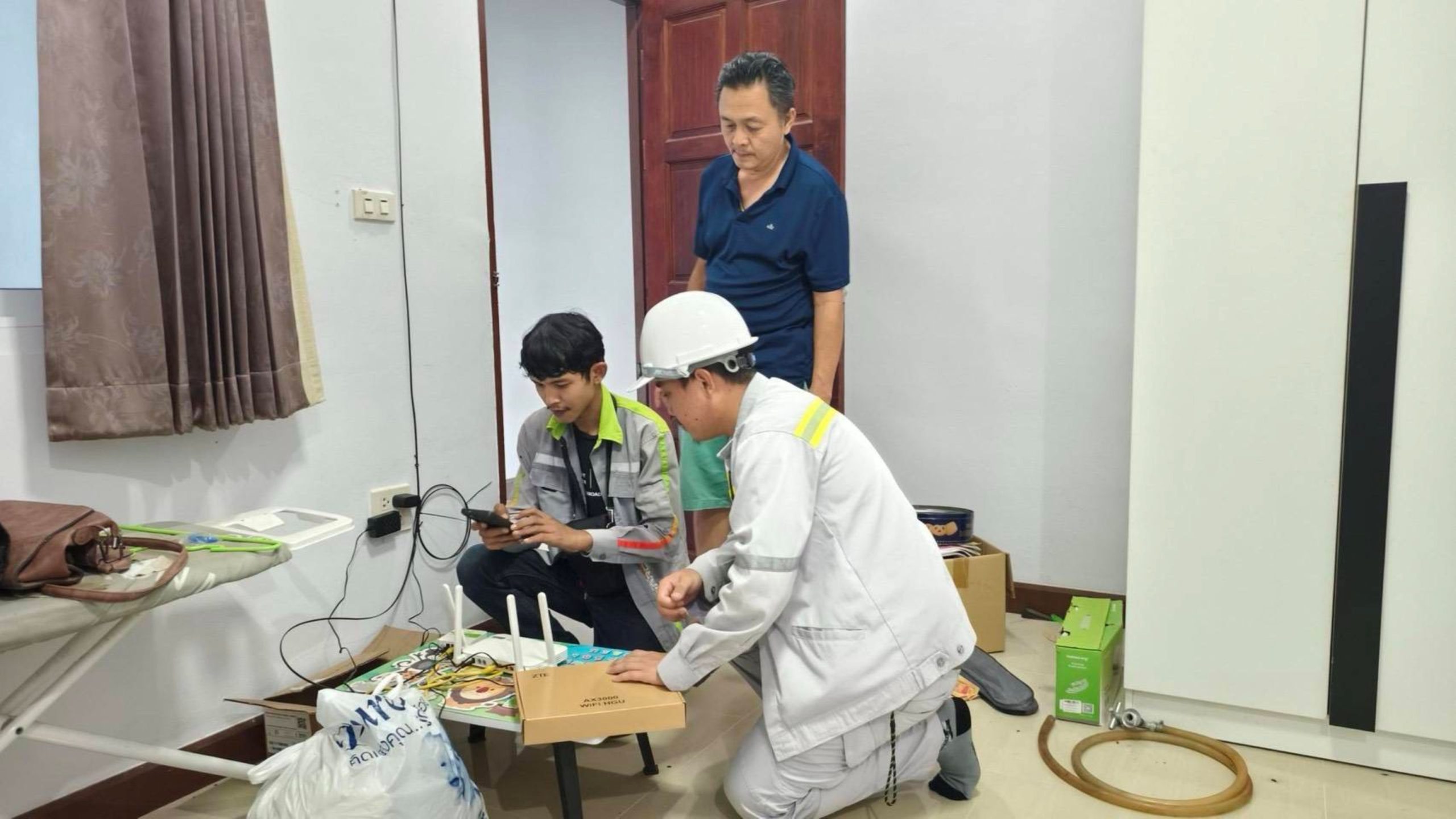 ทีมงานลงพื้นที่ดูแลลูกค้าเชิงรุกถึงหน้าบ้าน เปลี่ยนอุปกรณ์ WiFi Router และ Playbox ที่ชำรุดจากน้ำท่วมให้ใช้งานได้ทันที โดยไม่มีค่าใช้จ่าย