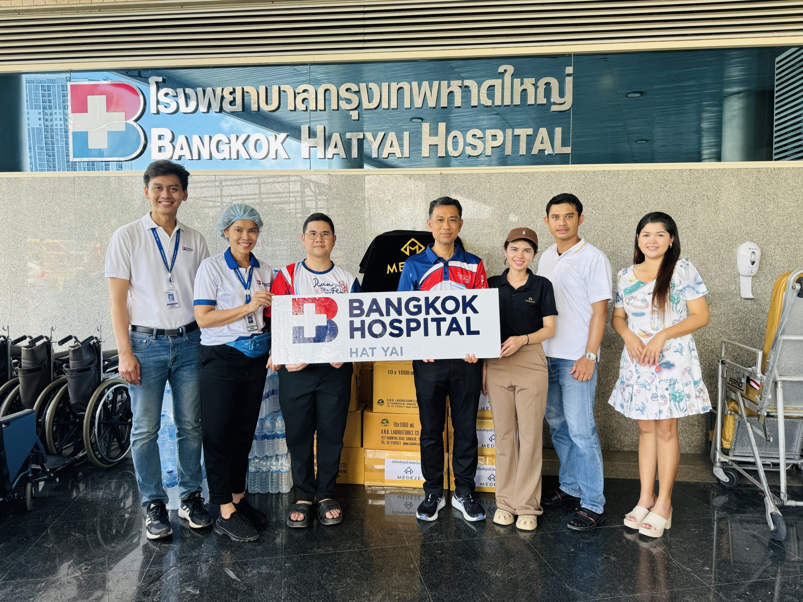 โดยได้ทำการจัดส่งยาและเวชภัณฑ์ไปยังสถานพยาบาลในพื้นที่ที่ได้รับผลกระทบ ได้แก่ โรงพยาบาลส่งเสริมสุขภาพตำบลท่าช้าง (รพ.สต.ท่าช้าง), โรงพยาบาลกรุงเทพหาดใหญ่, โรงพยาบาลสนามชั่วคราว ตั้งที่โรงเรียนนานาชาติเซาเทิร์นหาดใหญ่ (SIH), หน่วยแพทย์เคลื่อนที่ และโรงพยาบาลสนาม สำนักงานสาธารณสุขจังหวัดสตูล