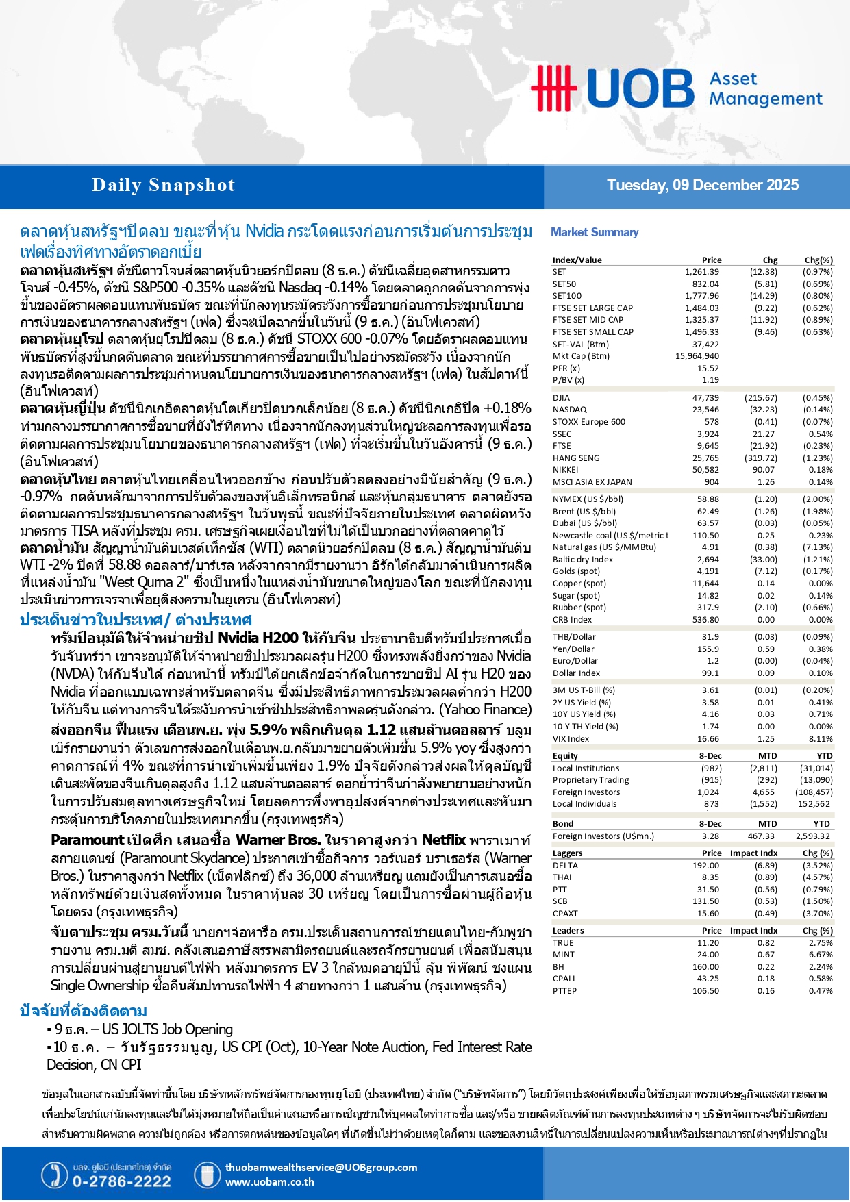 UOBAM : ตลาดหุ้นสหรัฐฯปิดลบ – หุ้น Nvidia กระโดดแรงก่อนเริ่มประชุมเฟดเรื่องทิศทางดอกเบี้ย 09/12/2025 09:1909/12/2025 09:19009Breaking News, Fund Manager HoonSmart.com>> UOBAM Daily Snapshot : ตลาดหุ้นสหรัฐฯปิดลบ ขณะที่หุ้น Nvidia กระโดดแรงก่อนการเริ่มต้นการประชุมเฟดเรื่องทิศทางอัตราดอกเบี้ย ———————————————————————————————————————————————————– Facebook iconFacebookTwitter iconTwitterLINE iconLine