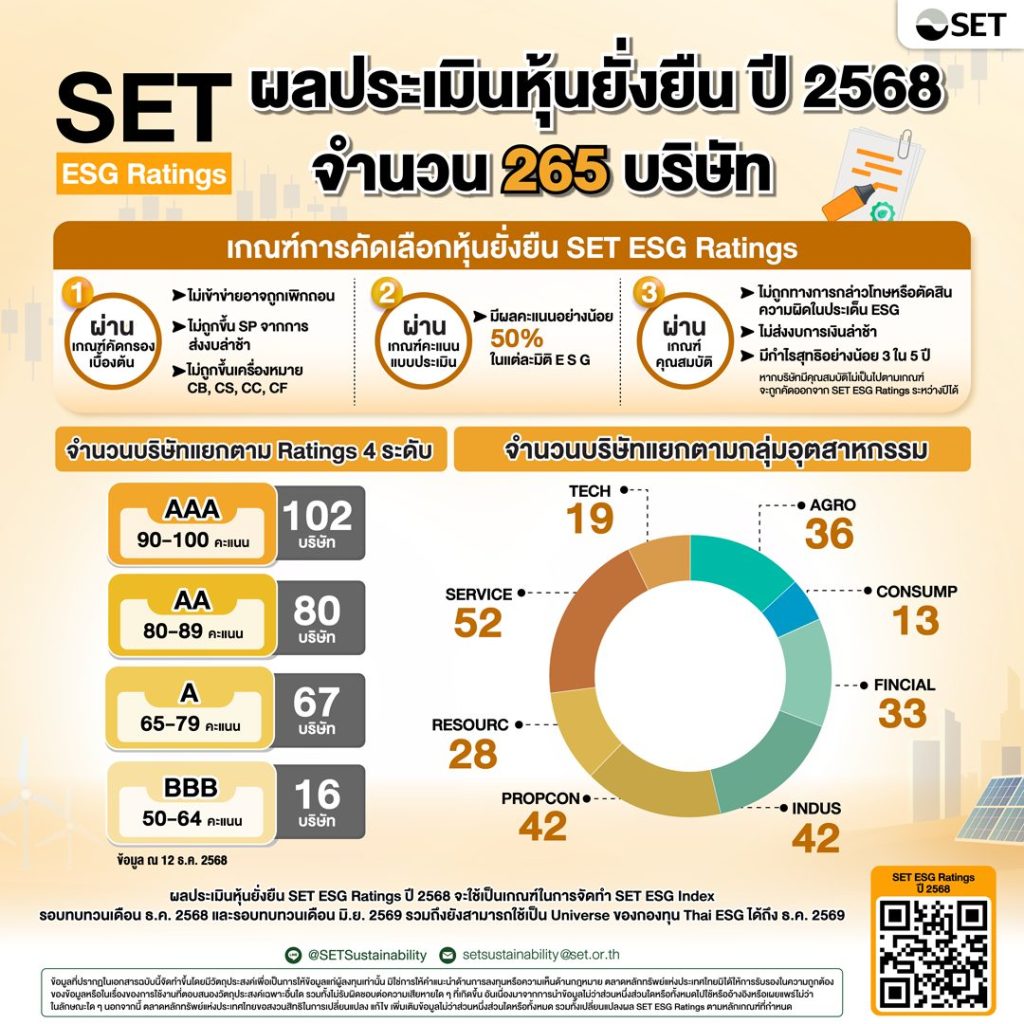 ผู้สนใจสามารถดูผลประเมินหุ้นยั่งยืน SET ESG Ratings ปี 2568 และเข้าใช้งาน ESG Online Assessment ได้ที่ www.setsustainability.com/ESG-ratings