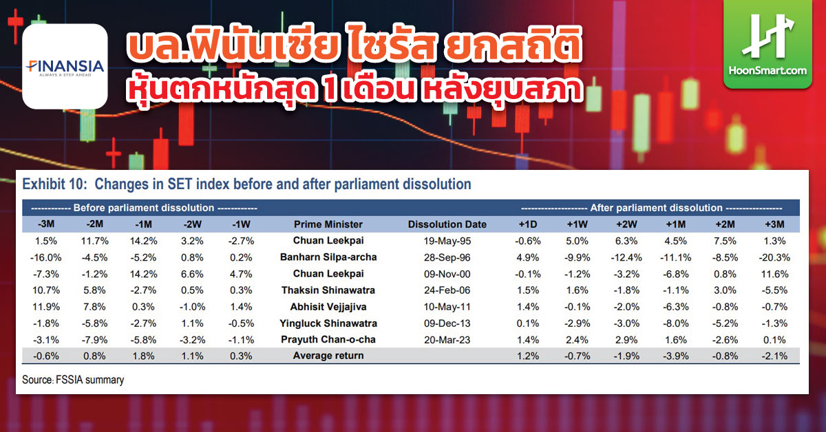 อย่างไรก็ดี จะเห็นได้ว่า Timeline การเลือกตั้งเร็วขึ้น คาดว่าจะมีการเลือกตั้งใหม่ในวันที่ 8 ก.พ. 2569 หากเป็นไปตามกรอบที่วางไว้ คาดว่า SET จะปรับตัวขึ้นได้ จากสถิติ SET จะขึ้นได้ราว 2.07% ในช่วง 2 เดือนก่อนการเลือกตั้ง และหุ้นที่น่าสนใจลงทุนเป็นหุ้นในกลุ่มธนาคาร, ไฟแนนซ์, มีเดีย, ICT และค้าปลีก