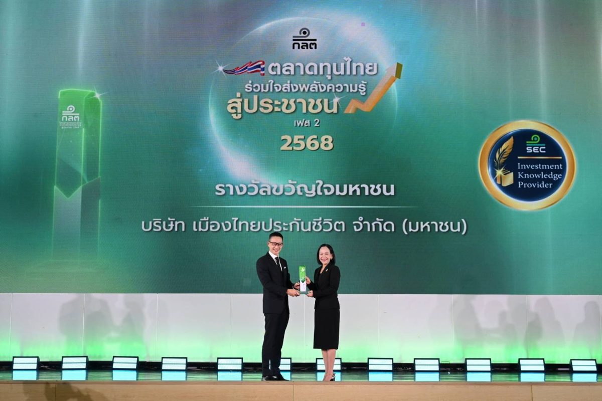 บริษัท เมืองไทยประกันชีวิต จำกัด (มหาชน) คว้า 4 รางวัล จากโครงการ “ตลาดทุนไทยร่วมใจ        ส่งพลังความรู้ สู่ประชาชน เฟส 2 ปี 2568” ซึ่งจัดโดยสำนักงานคณะกรรมการกำกับหลักทรัพย์และตลาดหลักทรัพย์ (ก.ล.ต.) สะท้อนบทบาทขององค์กรในการขับเคลื่อนการพัฒนาความรู้ด้านการเงิน การประกัน และการลงทุน (Financial and Insurance Literacy) ให้แก่ประชาชนไทยอย่างเป็นรูปธรรม ภายใต้กรอบการพัฒนาที่ยั่งยืน (ESG) และความรับผิดชอบต่อสังคมในการเสริมสร้างภูมิคุ้มกันทางการเงินในระยะยาว
