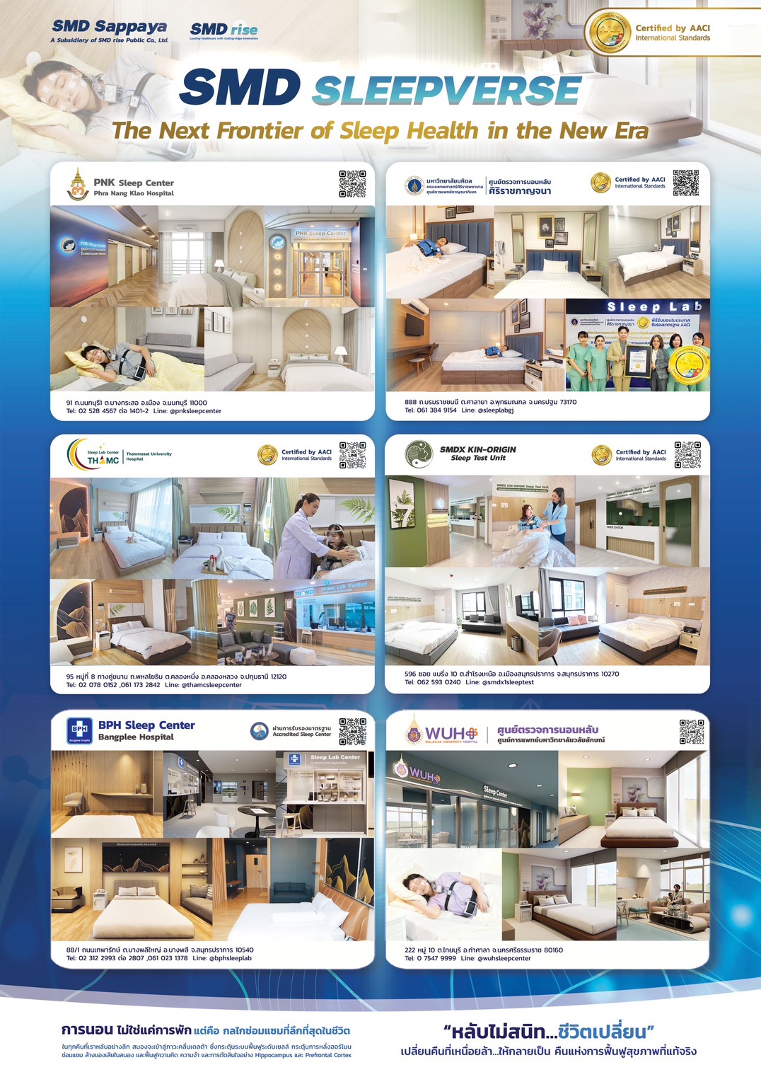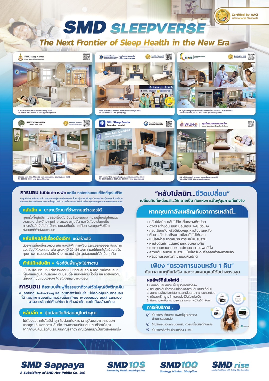 HoonSmart.com >> SMD100 โชว์ศักยภาพ SMD SLEEPVERSE แพลตฟอร์มศูนย์ตรวจการนอนหลับ ร่วมทุนโรงพยาบาลรัฐ สร้างโมเดลรายได้ระยะยาวจากการรักษา ภาวะหยุดหายใจขณะนอนหลับ (OSA ) ปักหมุด ! ต้นปี 2569 ทยอยเปิดศูนย์ตรวจการนอนหลับเพิ่ม 4 แห่ง 12 เตียง จากปัจจุบัน 6 แห่ง 31 เตียง