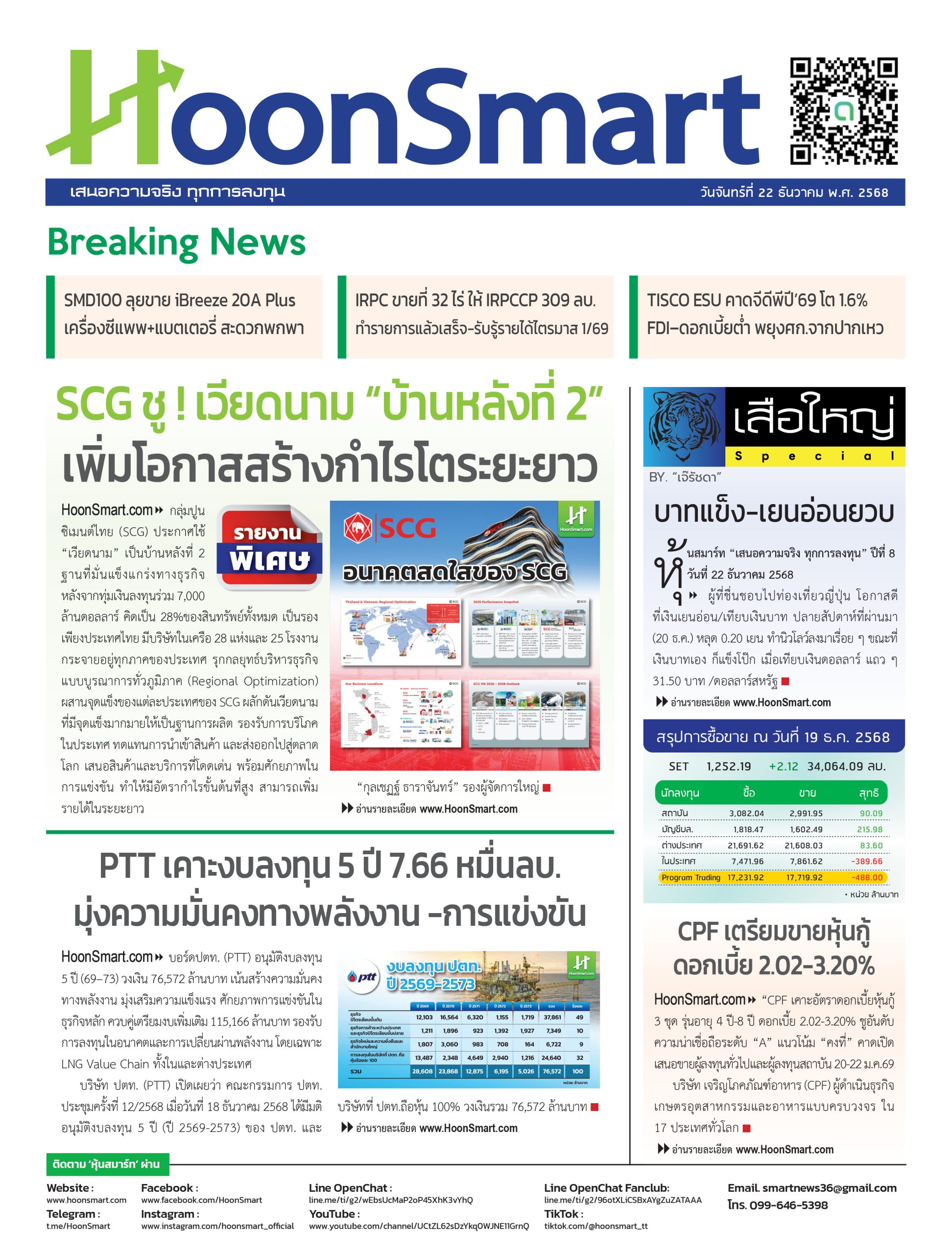 หนังสือพิมพ์ HoonSmart ปีที่ 8 ฉบับวันที่ 22 ธ.ค. 2568 21/12/2025 13:1521/12/2025 02:43Ple HoonsmartBreaking NewsExclusive News Facebook iconFacebookTwitter iconTwitterLINE iconLine