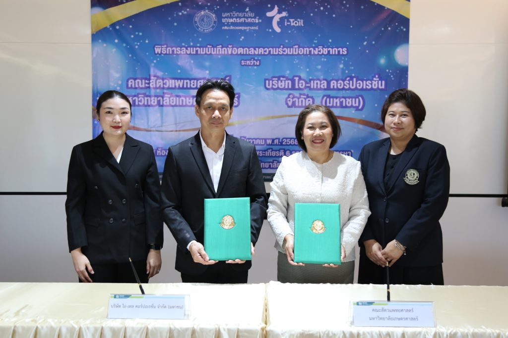บริษัท ไอ-เทล คอร์ปอเรชั่น (ITC) ได้ลงนามบันทึกความเข้าใจความร่วมมือ (MoU) กับคณะสัตวแพทยศาสตร์ มหาวิทยาลัยเกษตรศาสตร์ นับเป็นก้าวสำคัญในการขับเคลื่อนงานวิจัยและนวัตกรรมด้านโภชนาการอาหารสัตว์เลี้ยง โดยมี นายเผ่าเทพ เปรมใจ ผู้อำนวยการอาวุโสด้านนวัตกรรม บริษัท ไอ-เทล คอร์ปอเรชั่น จำกัด (มหาชน) และ ผศ.สพ.ญ.ดร.วราพร พิมพ์ประไพ คณบดีคณะสัตวแพทยศาสตร์ มหาวิทยาลัยเกษตรศาสตร์ เป็นตัวแทนในพิธีลงนาม