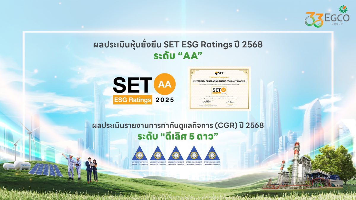 บริษัท ผลิตไฟฟ้า หรือ EGCO Group คว้าผลการประเมินความยั่งยืนในปี 2568 ระดับประเทศและระดับภูมิภาคอาเซียน