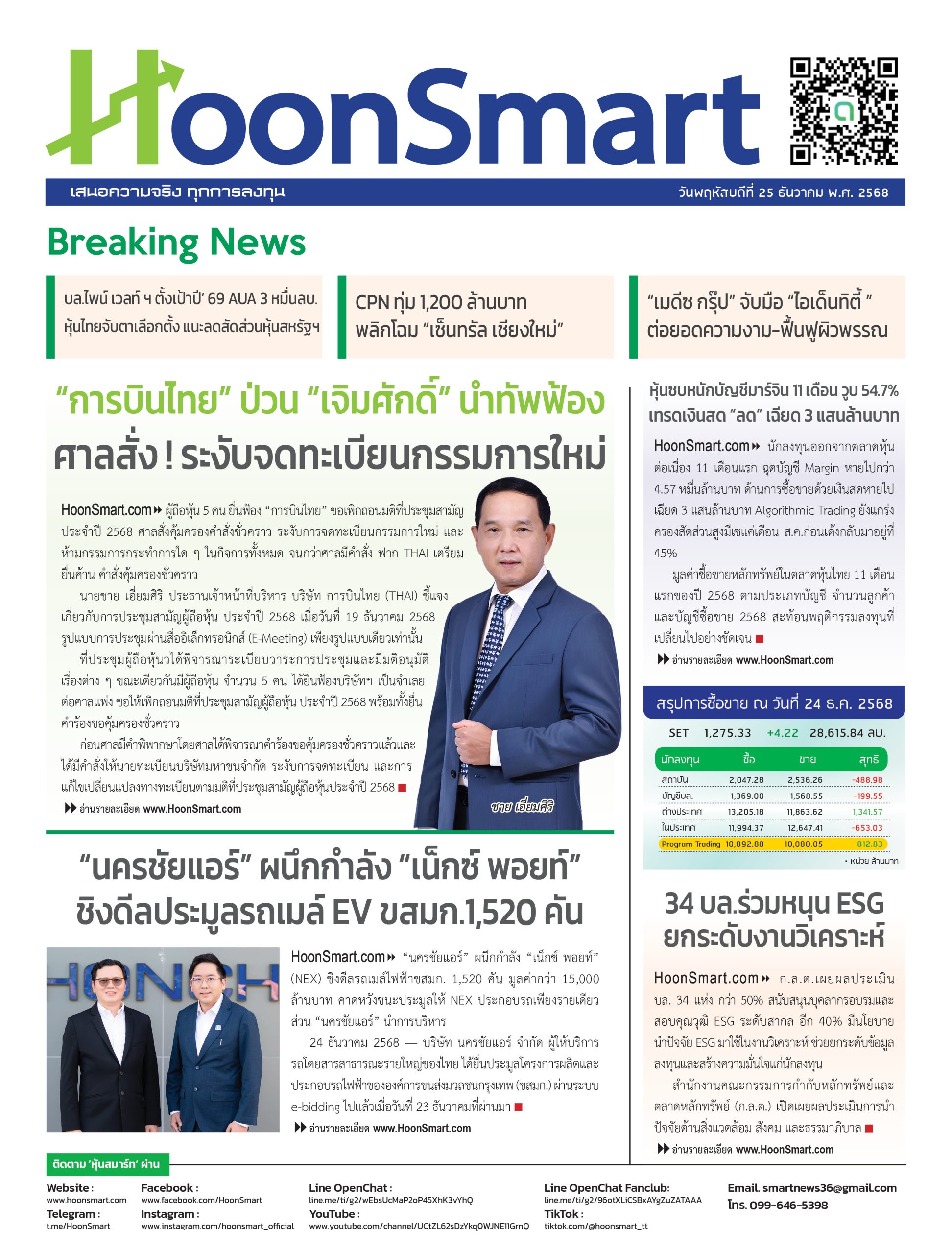 หนังสือพิมพ์ HoonSmart ปีที่ 8 ฉบับวันที่ 25 ธ.ค. 2568 24/12/2025 20:36Ple HoonsmartBreaking NewsExclusive News Facebook iconFacebookTwitter iconTwitterLINE iconLine