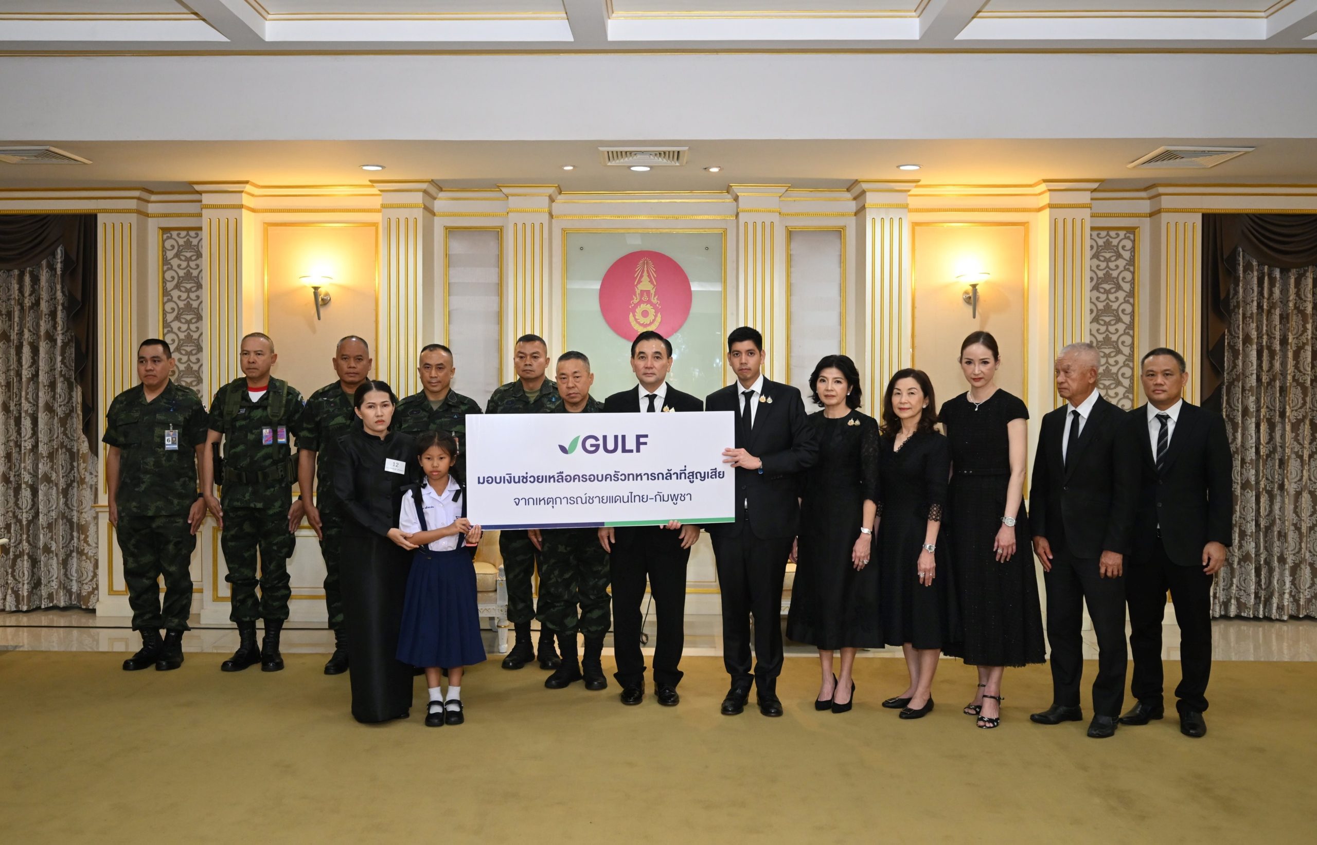 เงินช่วยเหลือดังกล่าว มาจาก ‘กองทุน 100 ล้านบาท’ ที่ GULF จัดตั้งขึ้นเพื่อเยียวยาและเชิดชูเกียรติทหารที่บาดเจ็บและเสียชีวิตจากการปฏิบัติหน้าที่บริเวณชายแดนไทย-กัมพูชา โดยการส่งมอบในครั้งนี้เป็นการช่วยเหลือครอบครัวผู้สูญเสียรวม 23 ครอบครัว
