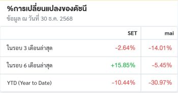 ดัชนีเฉลี่ยอุตสาหกรรมดาวโจนส์ (Dow Jones Industrial Average: DJIA) วันที่ 30 ธันวาคม 2568 รวมทั้ง ดัชนี S&P500 และดัชนี Nasdaq ปิดลบเล็กน้อยในการซื้อขายที่ผันผวนการปรับขึ้นในหุ้นกลุ่มบริการสื่อสารถูกหักล้างด้วยการลดลงของหุ้นกลุ่มเทคโนโลยีและกลุ่มการเงิน