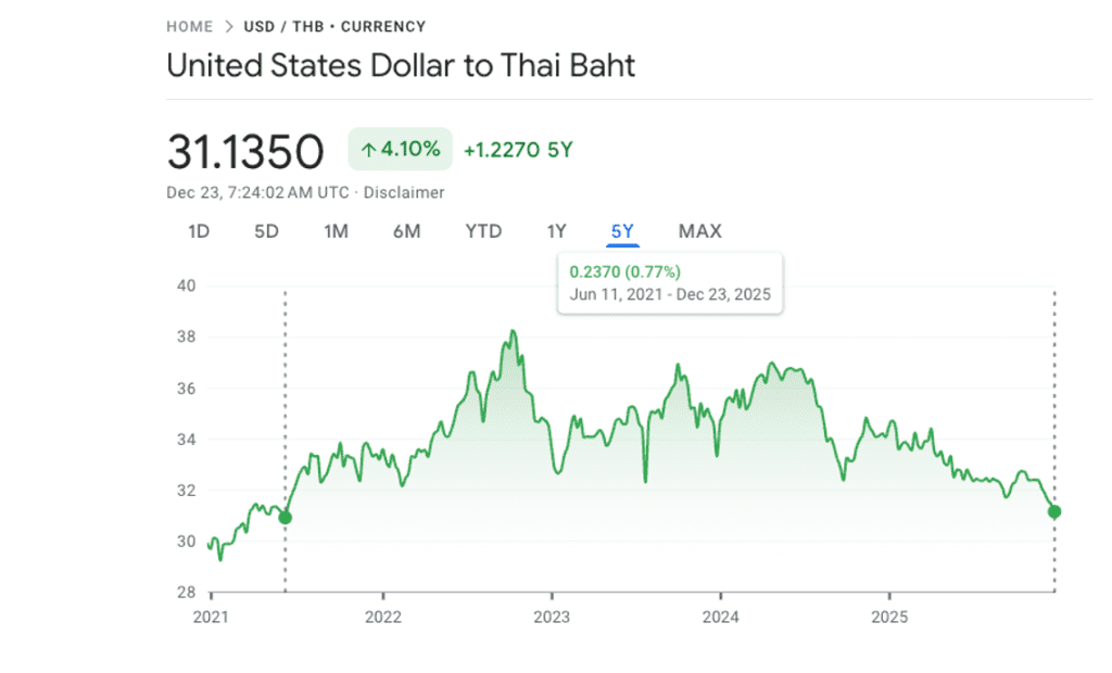 ในทางกลับกัน ภาคธนาคารพาณิชย์อาจเผชิญแรงกดดันจากรายได้ดอกเบี้ยสุทธิที่น้องลง ซึ่งอาจกระทบต่อกำไรในระยะสั้น และค่าเงินบาทมีความผันผวนตาม Fund Flow ที่ไหลเข้ามาเพิ่มขึ้นทำให้ปัจจุบันค่าเงินไทยบาทแข็งค่าเป็นอย่างมากและเมื่อเทียบกับ USD แข็งค่าไปแล้วกว่า 9.3% (ข้อมูล ณ วันที่ 29/12/25)