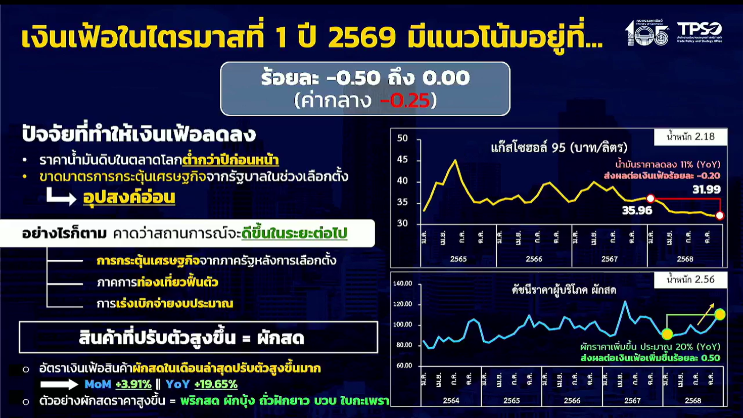 ส่วนปี 2569 ยังคงคาดการณ์ในช่วง 0.0-1.0% (ค่ากลางอยู่ที่ 0.5%) ซึ่งปรับตัวสูงกว่าปี 2568