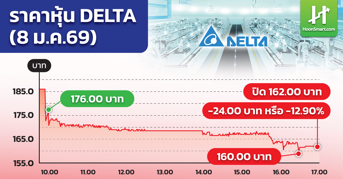 HoonSmart.com >> “เดลต้า อินเตอร์ ฯ โฮลดิ้งส์” โยนขายบิ๊กล็อตหุ้น DELTA วันนี้ 51.20 ล้านหุ้น มูลค่า 8,755 ล้านบาท . เฉลี่ย 171 บาท/หุ้น ทำตลาดแตกตื่น SET ร่วง 27 จุด ด้านหุ้น DELTA ร่วง 24 บาท ผลของบิ๊กล็อตทำให้ต่างชาติขายหุ้นไทย 3771 ล้าน นักลงทุนไทยซื้อกว่า 4,136 ล้านบาท