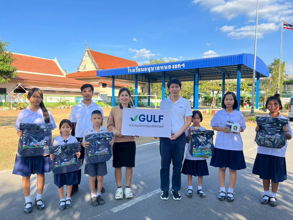 นอกจากการมอบของขวัญสร้างรอยยิ้มเนื่องในวันเด็กแห่งชาติแล้ว กิจกรรมในครั้งนี้ GULF มุ่งเน้นการปลูกฝังจิตสำนึกด้านสิ่งแวดล้อมผ่านสื่อการเรียนรู้และของขวัญรักษ์โลก โดยการส่งมอบสื่อการสอนจากโครงการ “ขอ ขวด ของเรา” ซึ่งเป็นโครงการร่วมกับมูลนิธิแม่ฟ้าหลวงในพระบรมราชูปถัมภ์ ที่ให้พนักงาน GULF ร่วมกันคัดแยกขวดพลาสติก (PET1) และฝาขวดน้ำพลาสติก เพื่อนำกลับมาสร้างคุณค่าเปลี่ยนเป็นสื่อการเรียนการสอนที่จะช่วยกระตุ้นและเสริมพัฒนาการเด็กปฐมวัย นับเป็นการเริ่มต้นปีใหม่ด้วยการสร้างรากฐานด้านการเรียนรู้ ควบคู่กับการรักษาสิ่งแวดล้อมให้กับเยาวชน