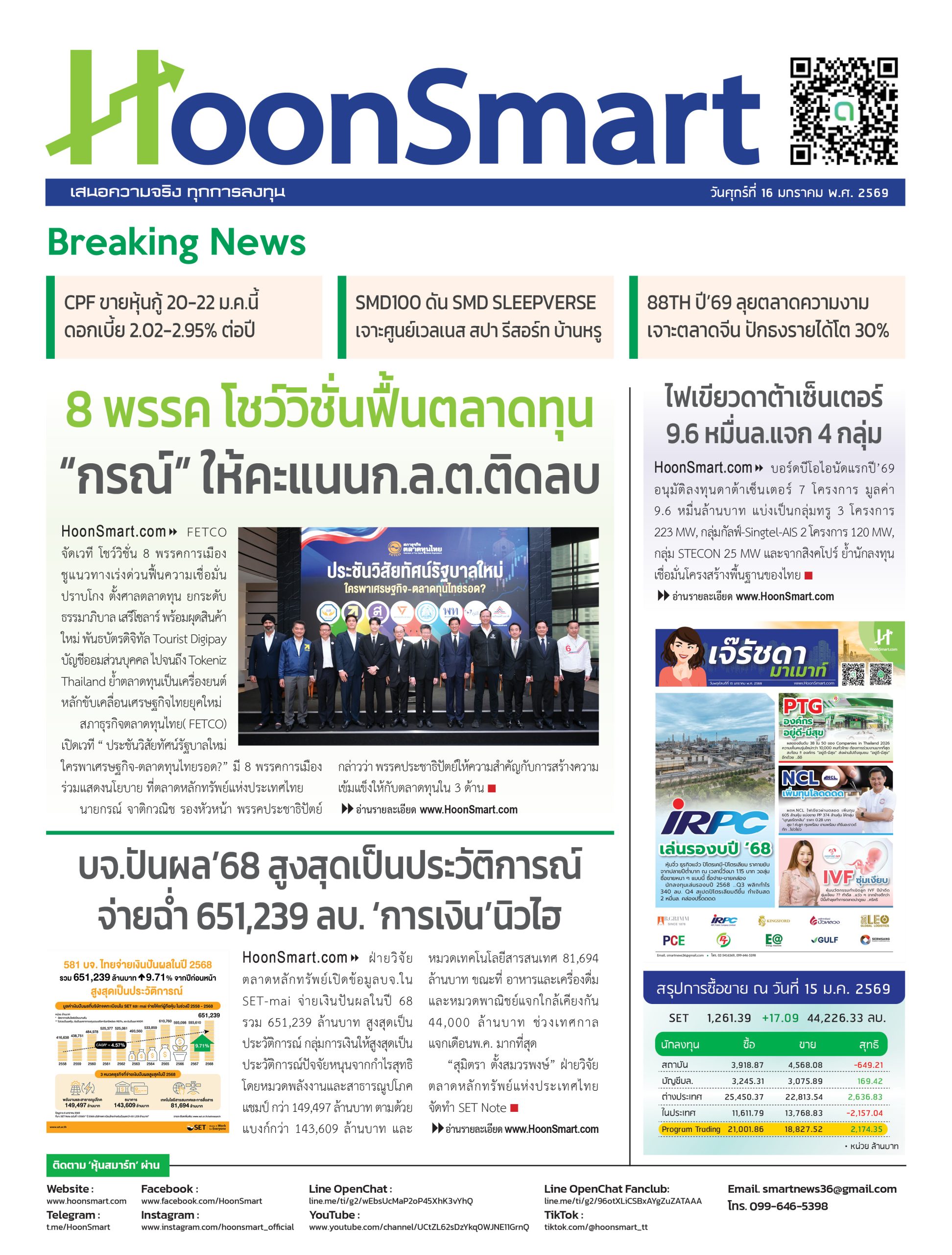 หนังสือพิมพ์ HoonSmart ปีที่ 9 ฉบับวันที่ 16 ม.ค. 2569 15/01/2026 20:2515/01/2026 20:41Ple HoonsmartBreaking NewsExclusive News Facebook iconFacebookTwitter iconTwitterLINE iconLine