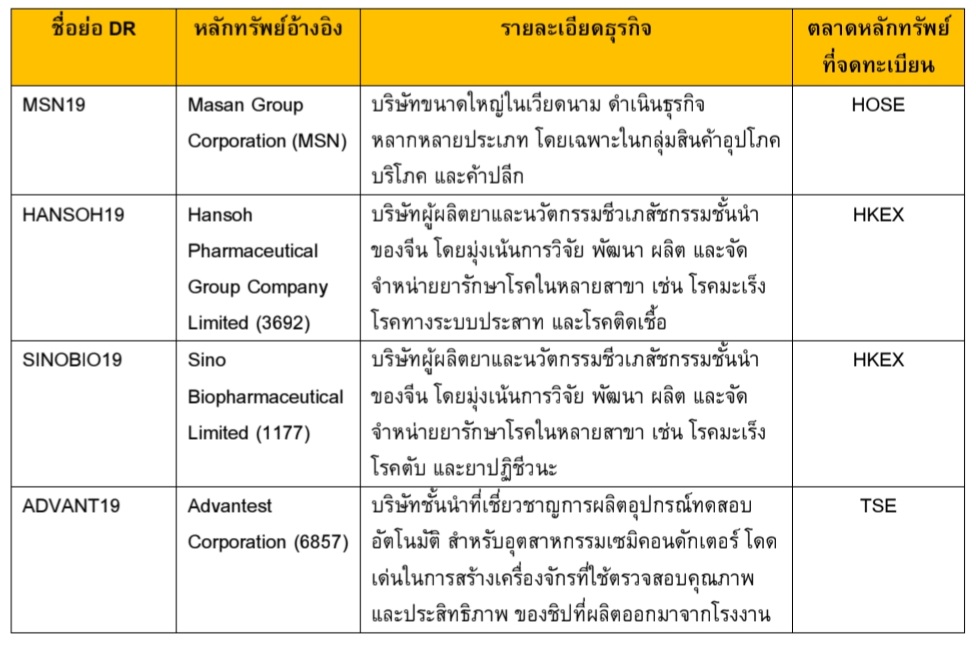 HoonSmart.com>> ตลาดหลักทรัพย์ฯ รับ 4 DR ใหม่ อิงหุ้นชั้นนำเวียดนาม – ฮ่องกง- ญี่ปุ่น ซื้อขาย 19 ม.ค. นี้