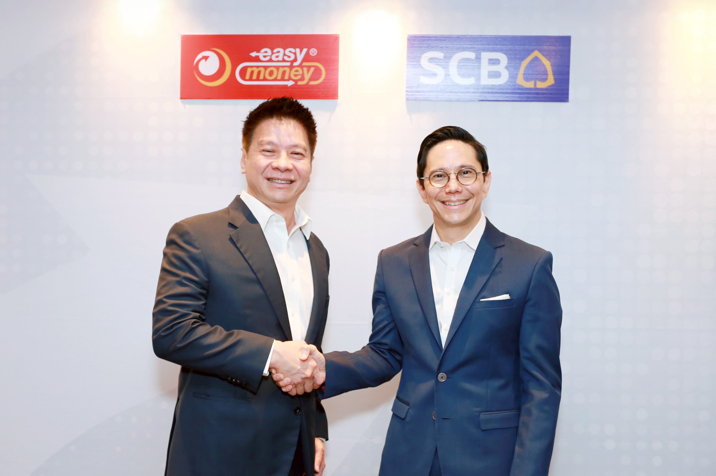 นายสิทธิวิชญ์ ตั้งธนาเกียรติ ประธานกรรมการบริหาร และนายสุธี พนาวร ประธานเจ้าหน้าที่บริหาร อีซี่มันนี่ กรุ๊ป ร่วมลงนามความร่วมมือกับ นายกฤษณ์ จันทโนทก ประธานเจ้าหน้าที่บริหาร ธนาคารไทยพาณิชย์ (SCB) ในโอกาสที่ธนาคารไทยพาณิชย์ ให้การสนับสนุนสินเชื่อจำนวน 3,000 ล้านบาท