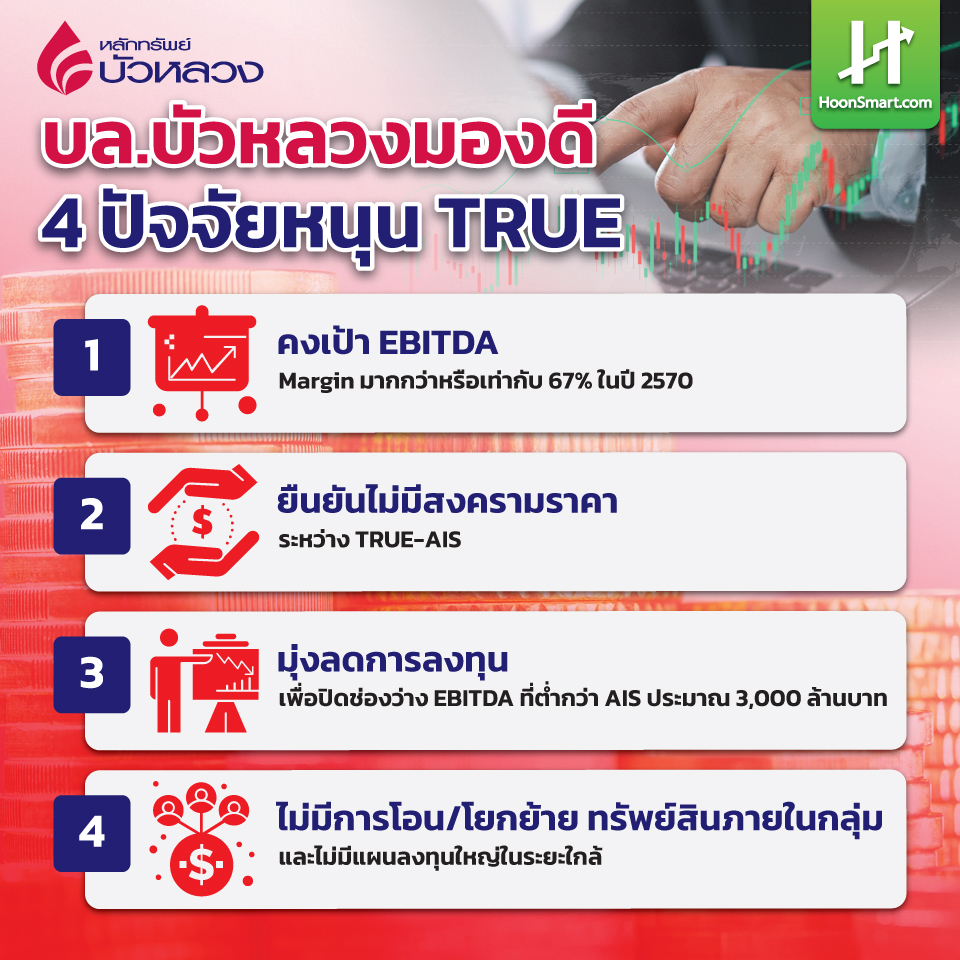 บล.บัวหลวงมองบวก TRUE คงเป้า EBITDA Margin มากกว่าหรือเท่ากับ 67 % ในปี 2570 ยืนยันไม่มีสงครามราคาระหว่าง TRUE-AIS