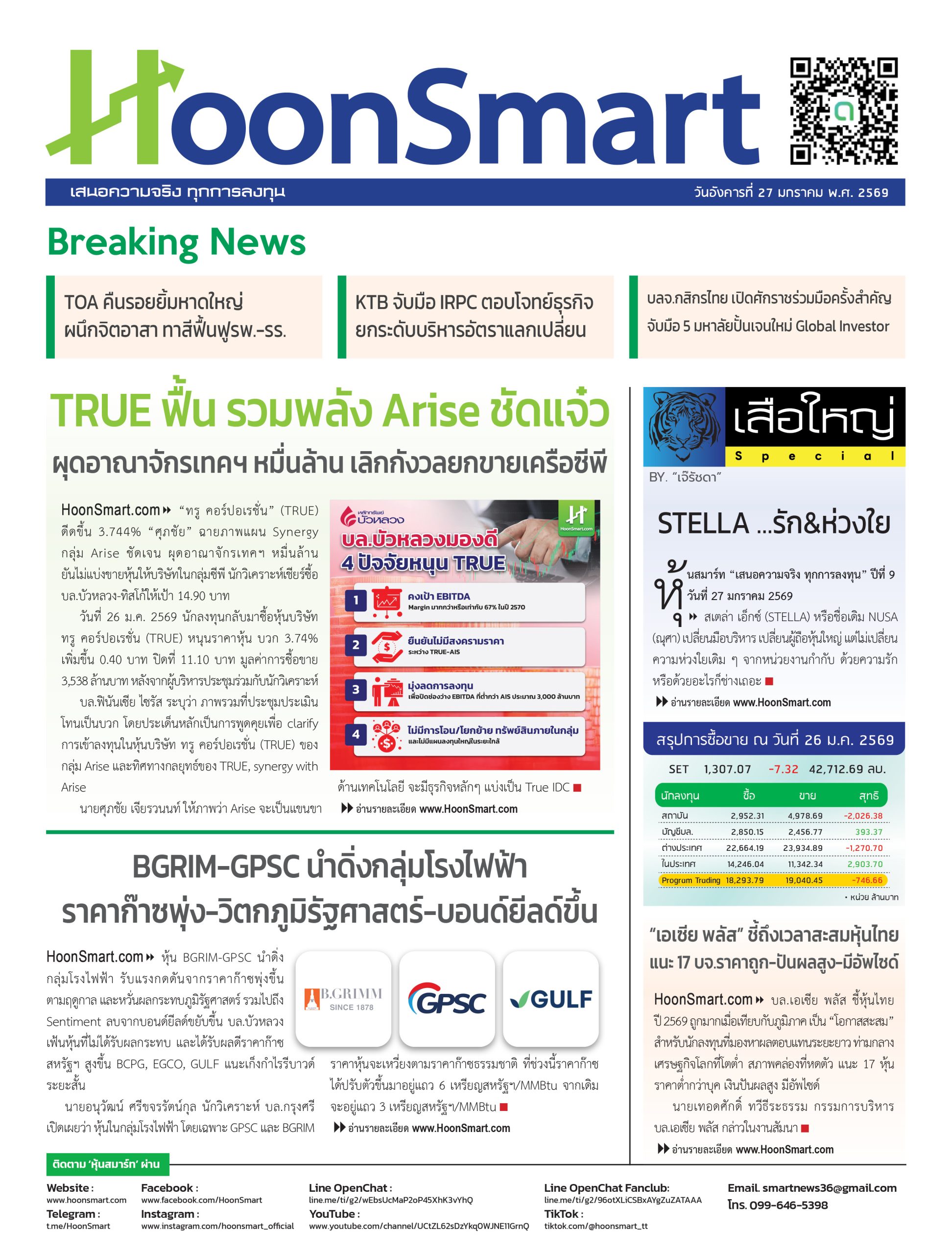 หนังสือพิมพ์ HoonSmart ปีที่ 9 ฉบับวันที่ 27 ม.ค. 2569