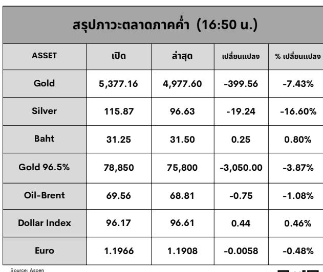 บริษัท วายแอลจี บูลเลี่ยน อินเตอร์แนชั่นแนล (YLG Bullion International) ออกบทวิเคราะห์ทองคำภาคค่ำว่า ราคาทองคำร่วงสู่ระดับโซน 5,000 ดอลลาร์ต่อออนซ์ จากแรงขายทำกำไรหลังมีกระแสข่าวสถานการณ์ Shutdown คลี่คลาย ประกอบกับเฟดอาจได้ประโานคนใหม่ที่มีท่าทีคุมเข้มนโยบายการเงินมากขึ้น โดยประธานาธิบดี โดนัลด์ ทรัมป์ เตรียมเปิดเผยรายชื่อผู้ได้รับการเสนอชื่อ ซึ่งรายงานระบุว่า เควิน วอร์ช อดีตผู้ว่าการเฟดที่วิจารณ์นโยบายผ่อนคลายมายาวนาน
