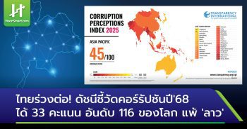 ไทยร่วงต่อ!ดัชนีชี้วัดคอร์รัปชันปี’68 ได้ 33 คะแนน อันดับ 116 ของโลก แพ้’ลาว’