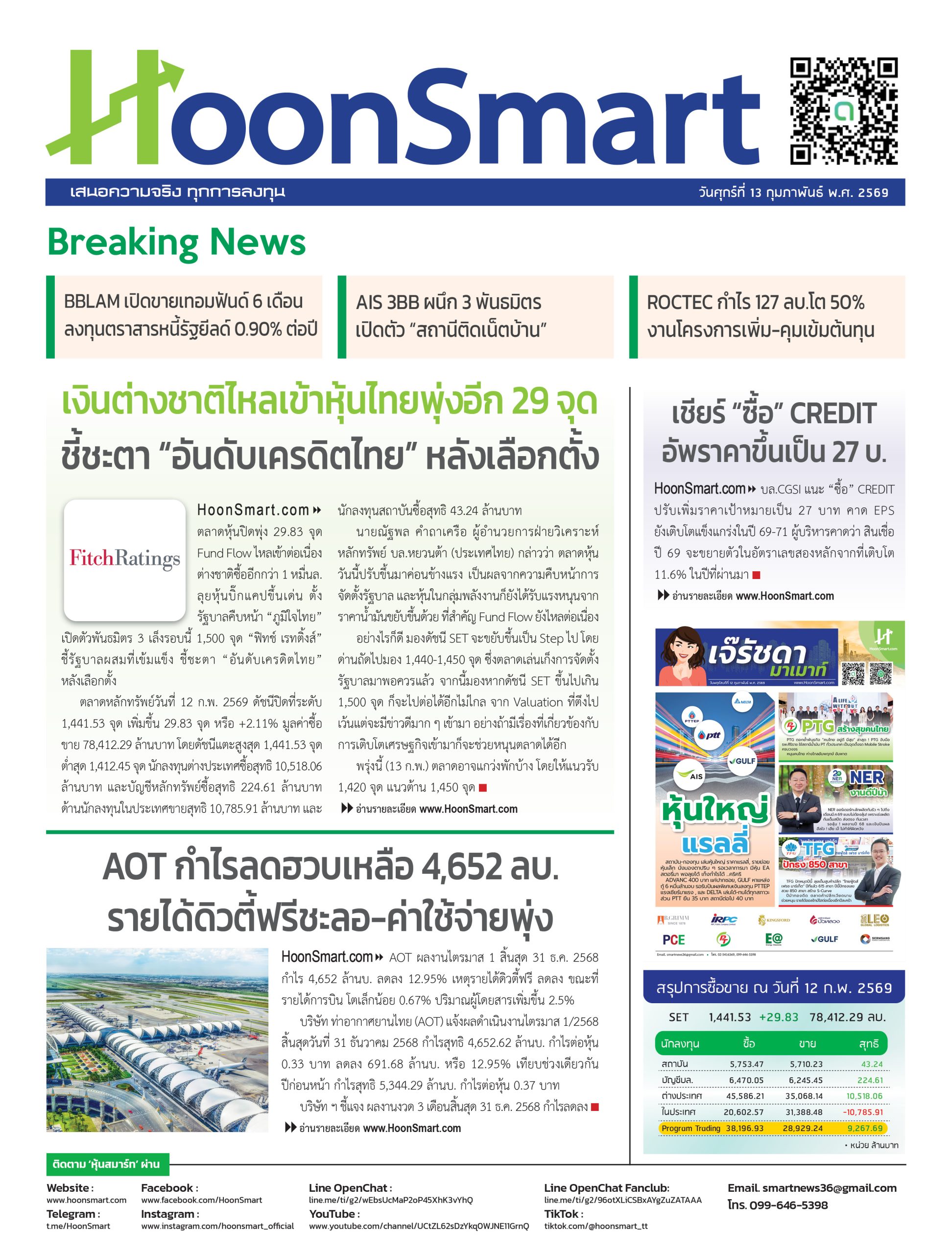 หนังสือพิมพ์ HoonSmart ก้าวสู่ปีที่ 9 ฉบับวันที่ 13 ก.พ. 2569