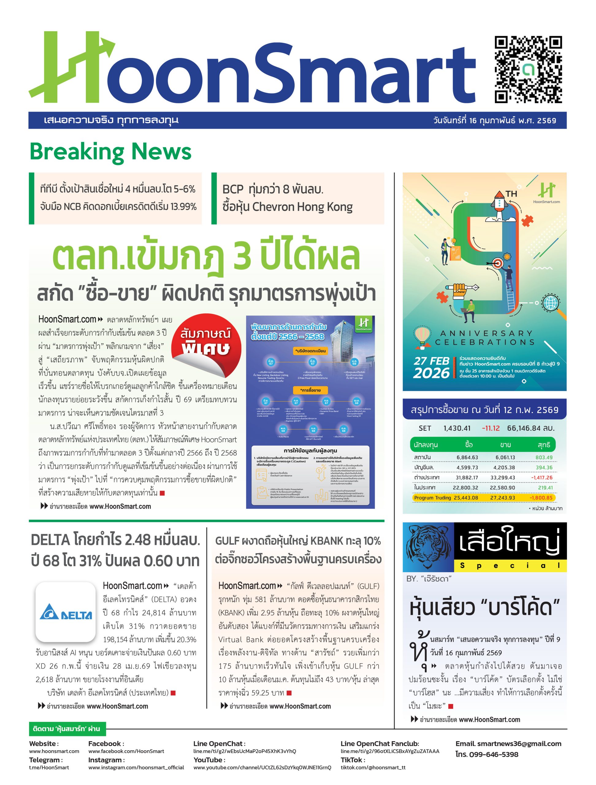 หนังสือพิมพ์ HoonSmart ก้าวสู่ปีที่ 9 ฉบับวันที่ 16 ก.พ. 2569 15/02/2026 13:57Ple HoonsmartBreaking NewsExclusive News Facebook iconFacebookTwitter iconTwitterLINE iconLine